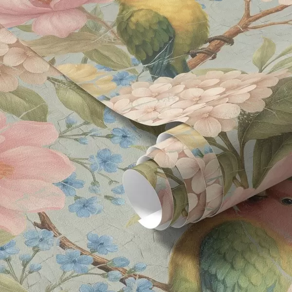 Tapeta Papige među božurima, hortenzijama i magnolijama br. a00747