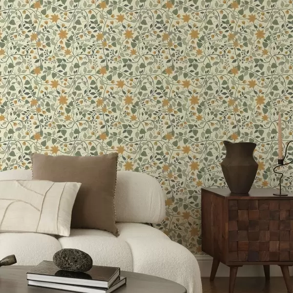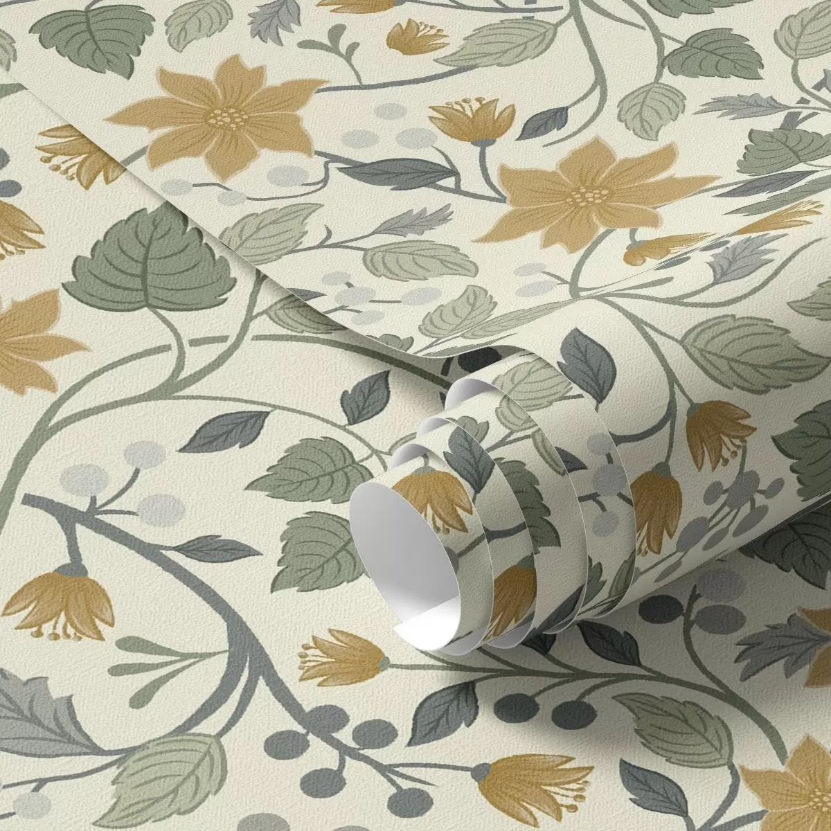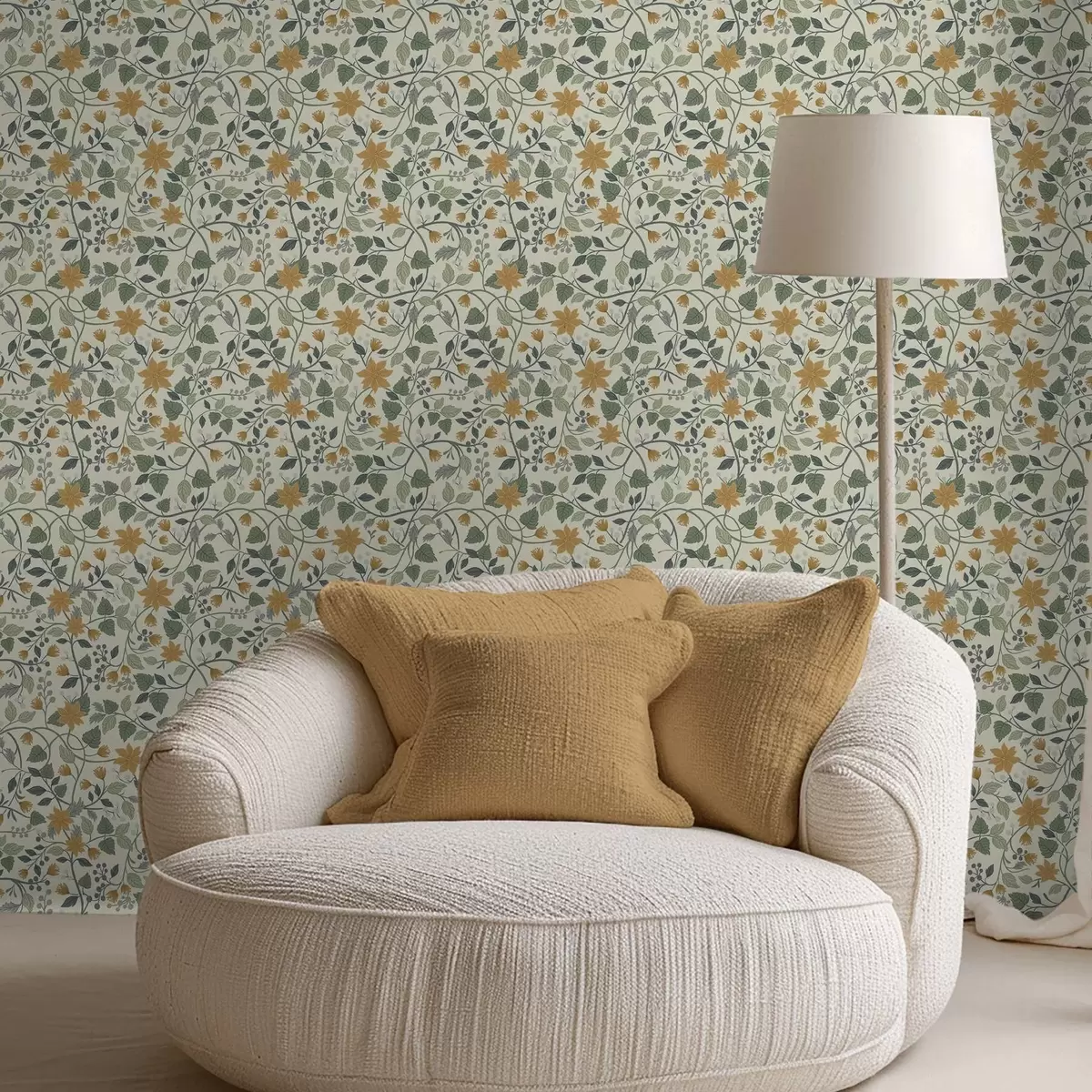 Tapeta Penjajuće cvjetne grane sa žutim cvijećem i bobicama br. a00750
