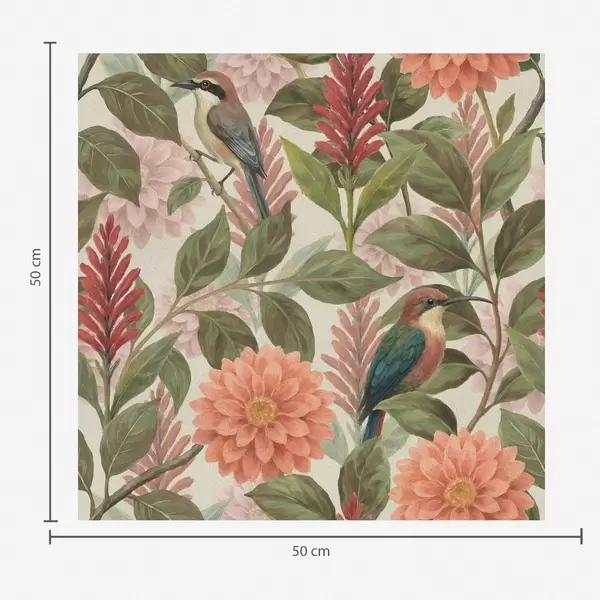 Tapeta Ptice među cvijećem i lišćem u toplim tonovima br. a00753