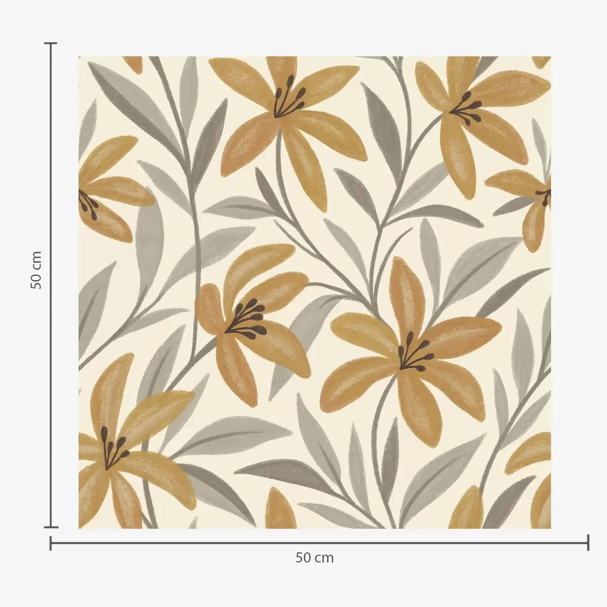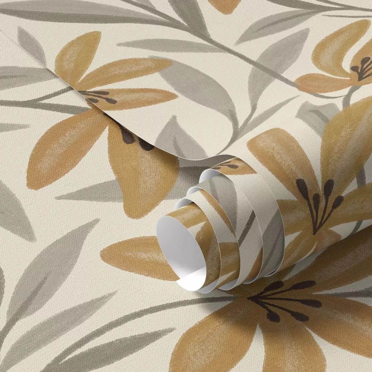 Tapeta Žuti ljiljani i sivozeleno lišće na svijetloj pozadini br. a00757
