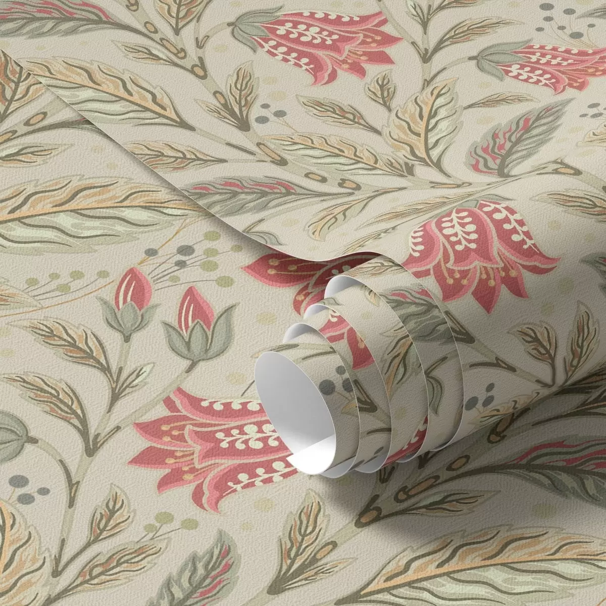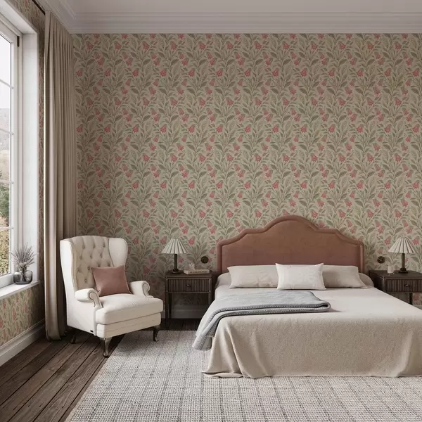 Tapeta Mali cvjetovi sa zvončićima u ružičasto-zelenoj paleti br. a00760