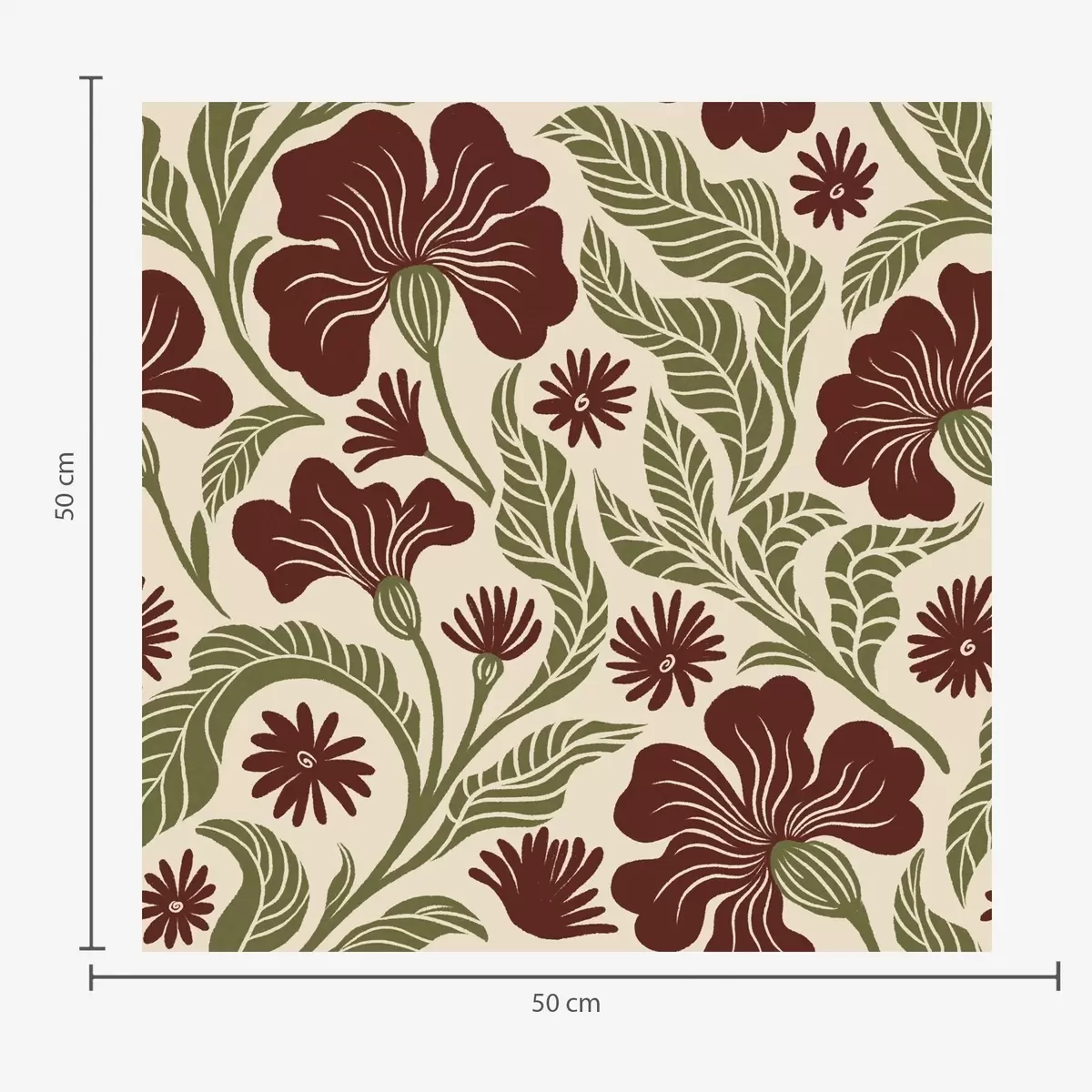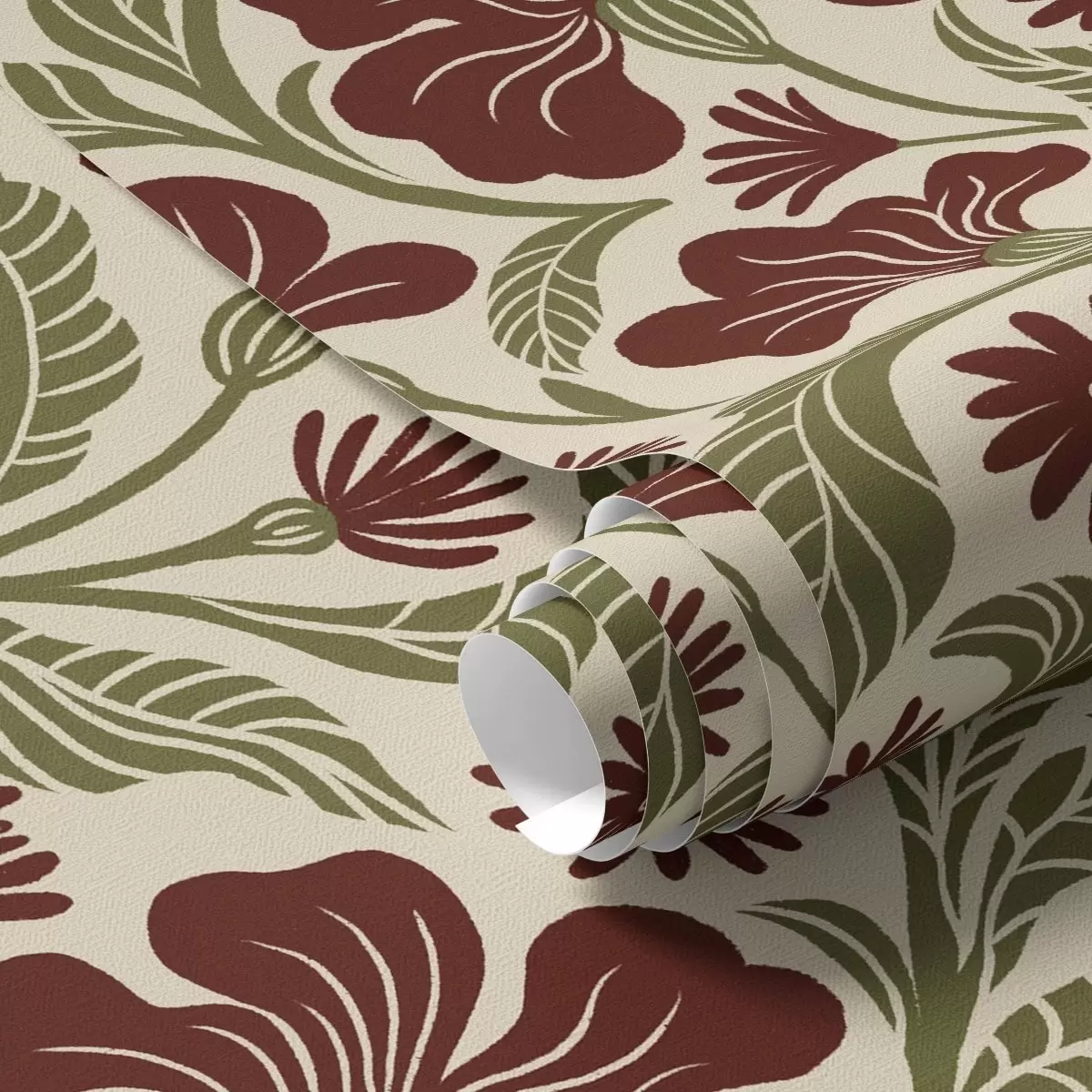 Tapeta Bordo cvijeće sa zelenim lišćem na svijetloj pozadini br. a00761