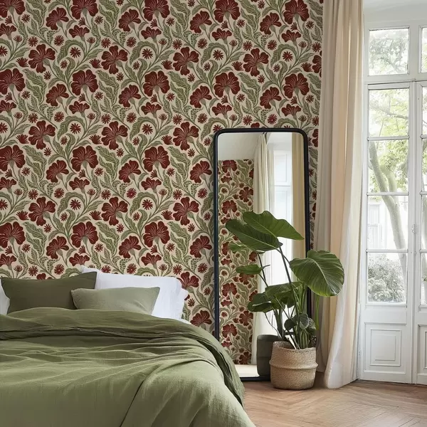 Tapeta Bordo cvijeće sa zelenim lišćem na svijetloj pozadini br. a00761