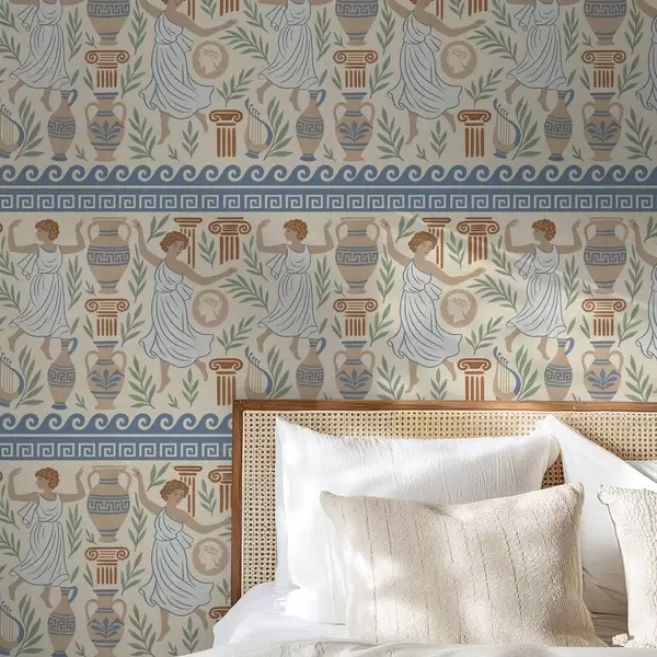 Tapeta Starogrčki ornament s figurama, vazama i stupovima br. a00768