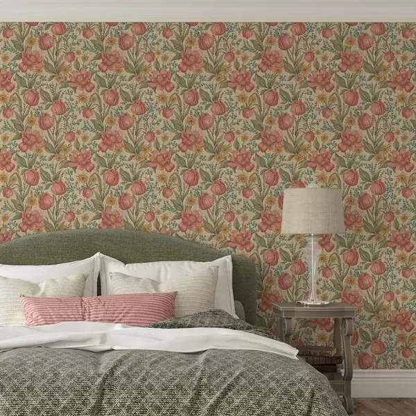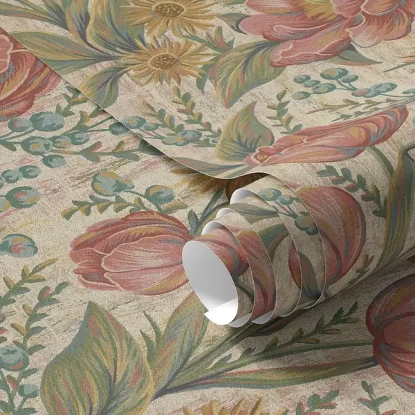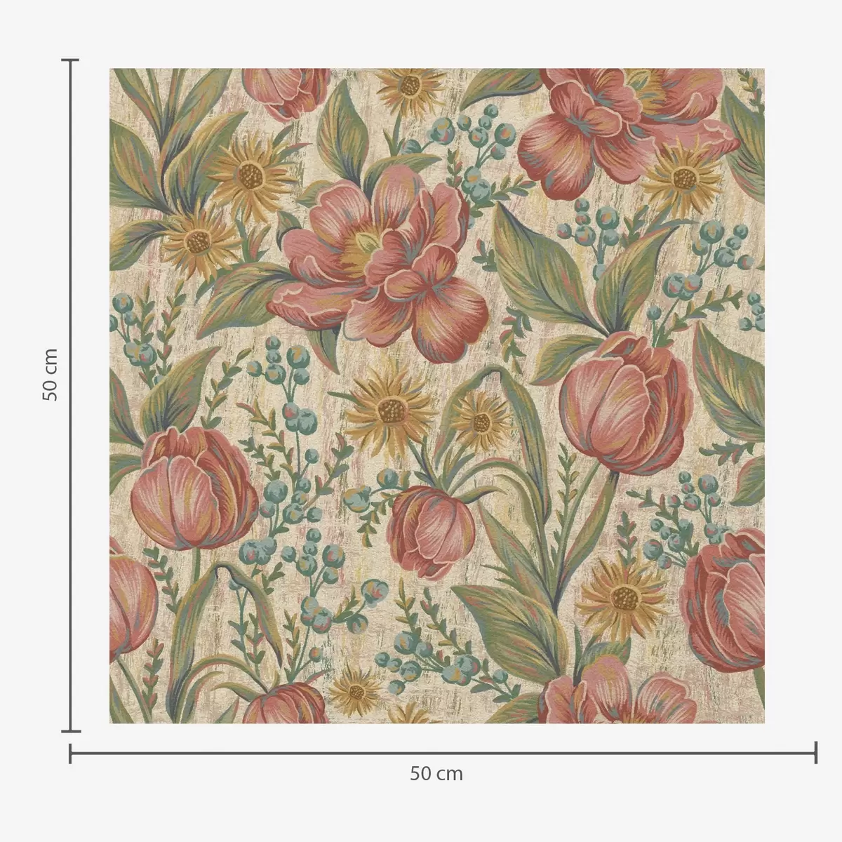 Tapeta Starinski tulipani i astre, teksturirana kremasta podloga br. a00773