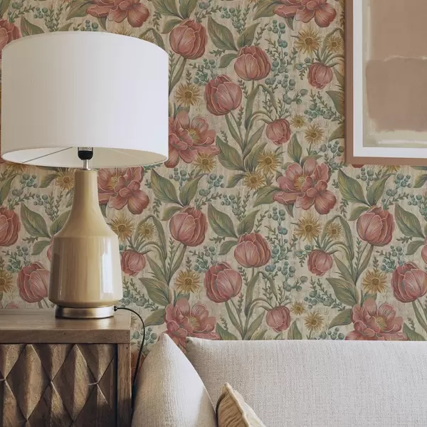 Tapeta Starinski tulipani i astre, teksturirana kremasta podloga br. a00773