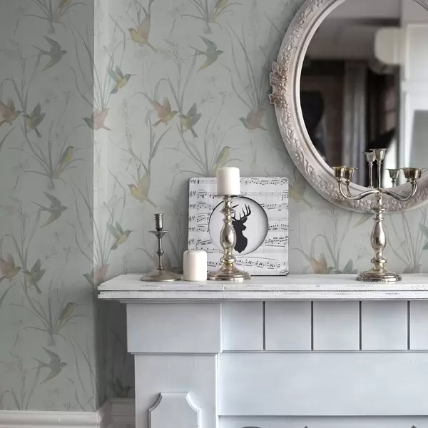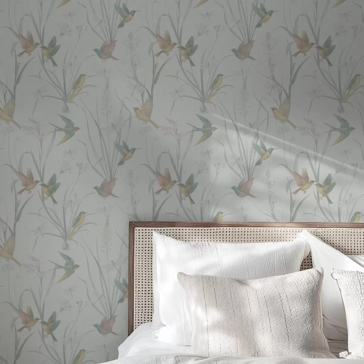 Tapeta Ptice među livadnim travama na svijetlosivom tlu br. a00776v1