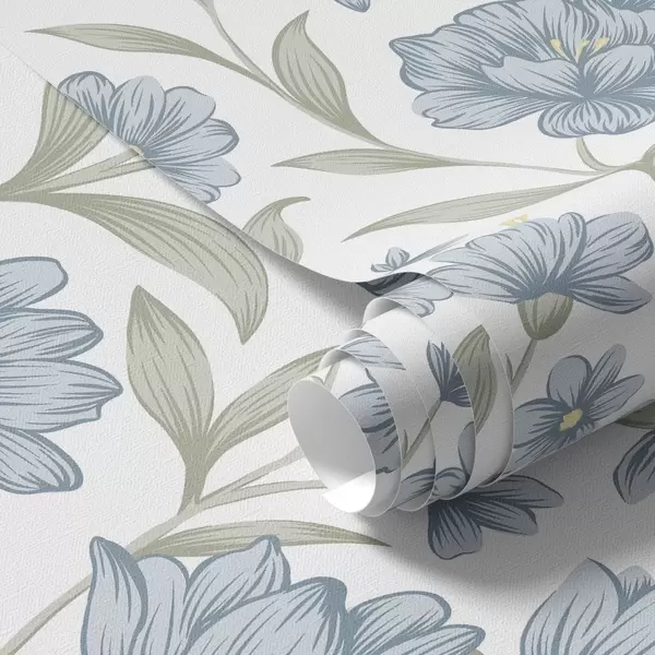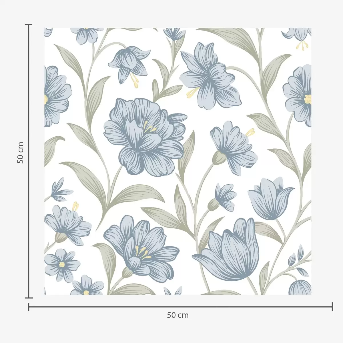 Tapeta Prašnjavo plavo cvijeće s listovima masline na bijelom br. a00780