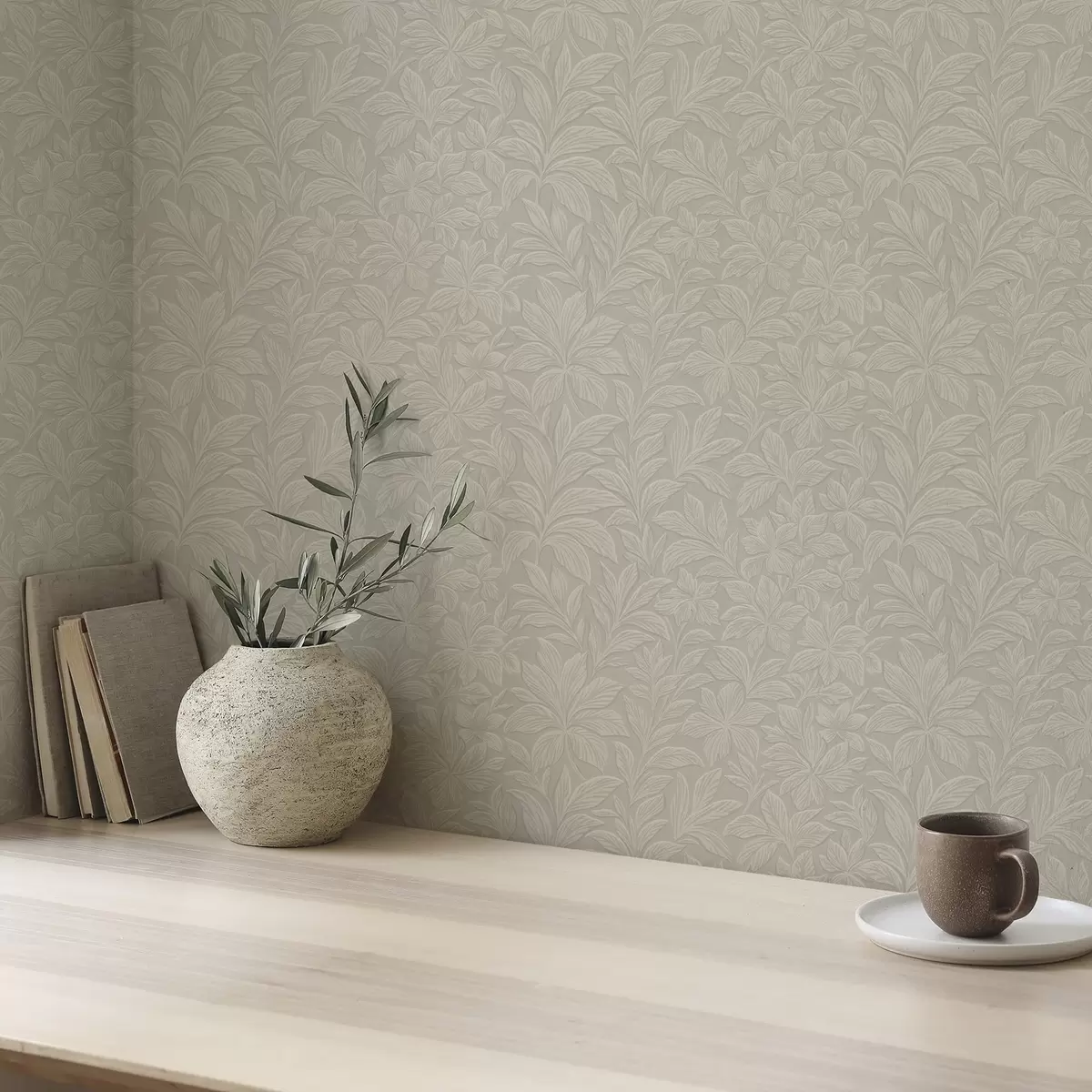 Tapeta Reljefne siluete listova, topla taupe boja br. a00781