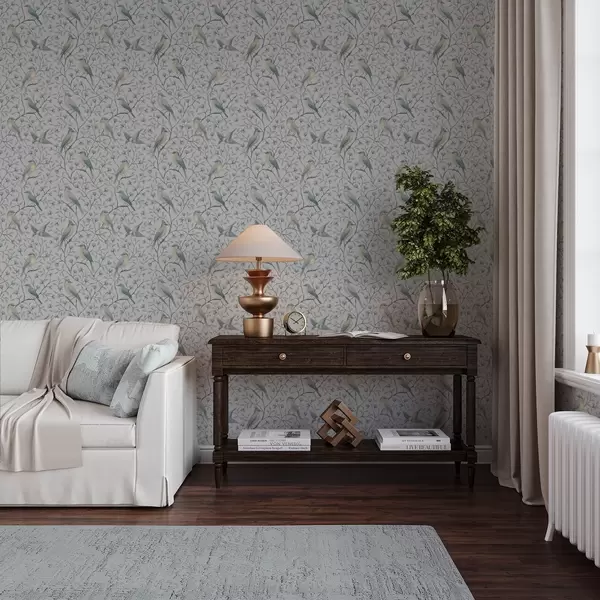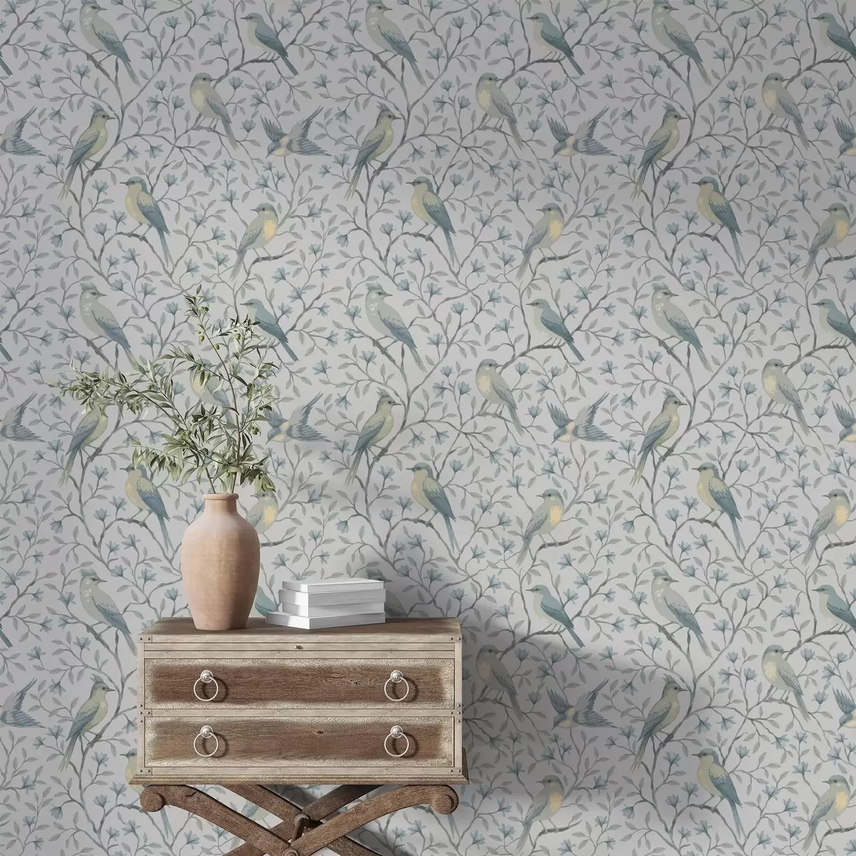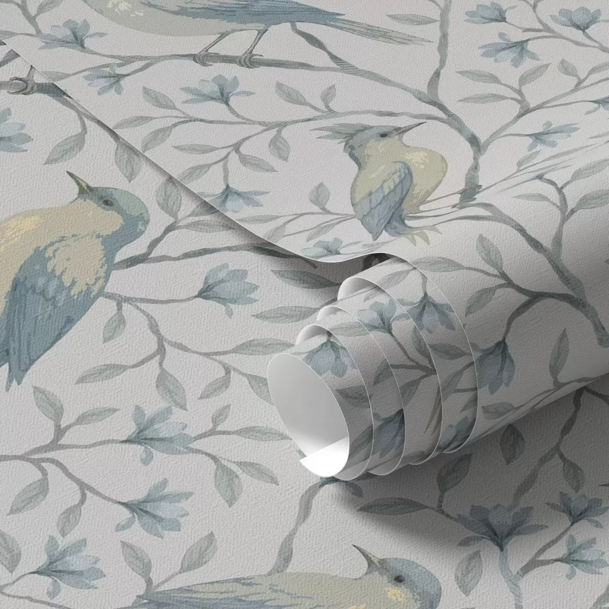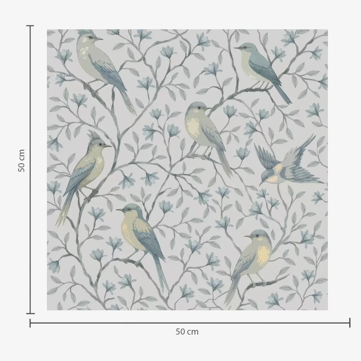 Tapeta Ptice na granama, sivo-plava shema br. a00782