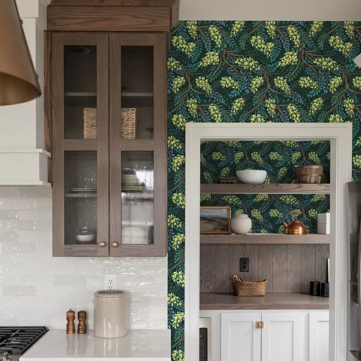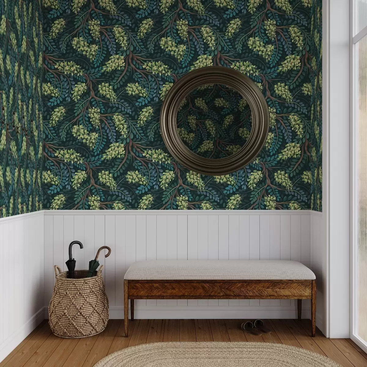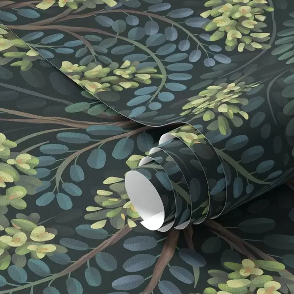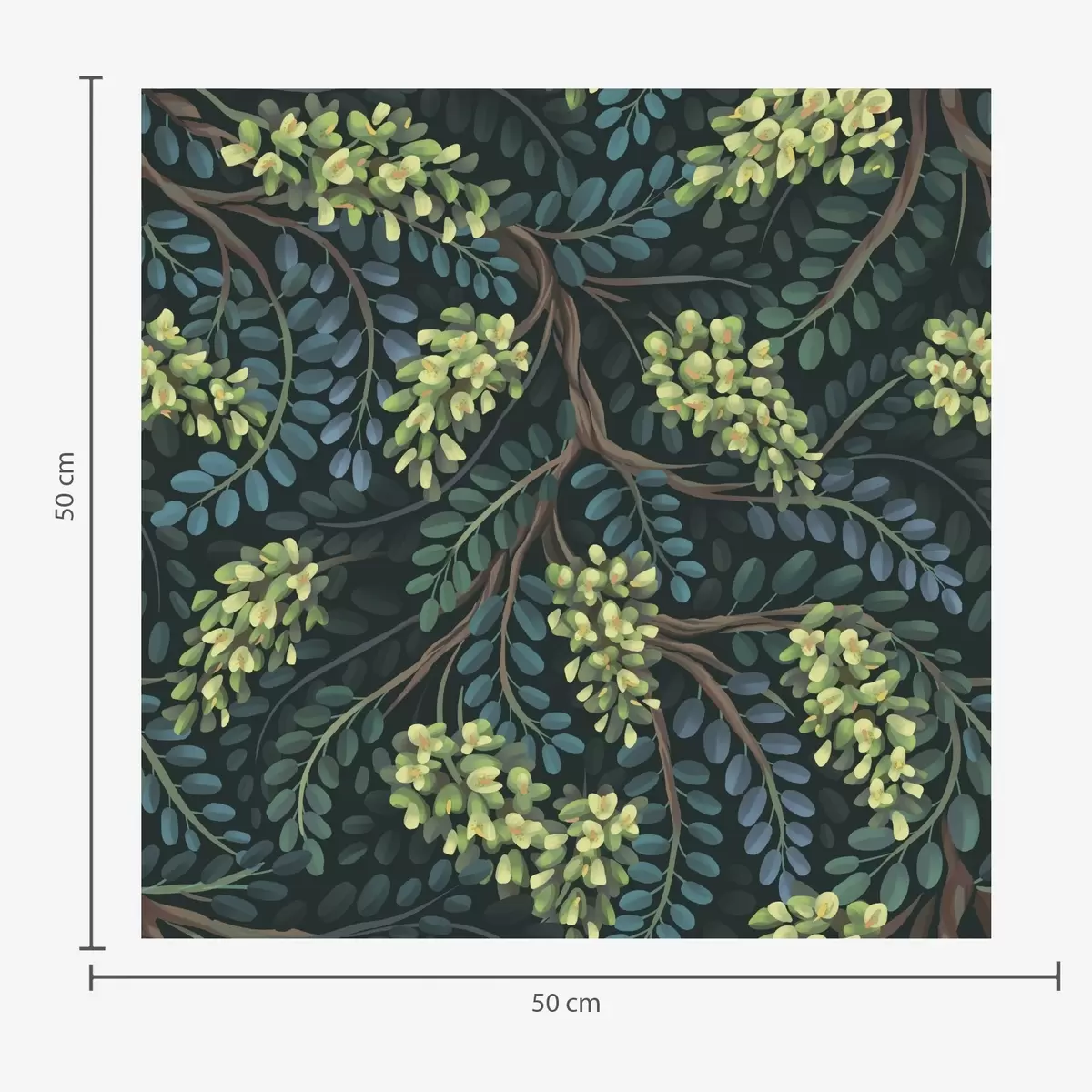 Tapeta Grane sa zelenkastim cvjetovima na tamnoj pozadini br. a00786