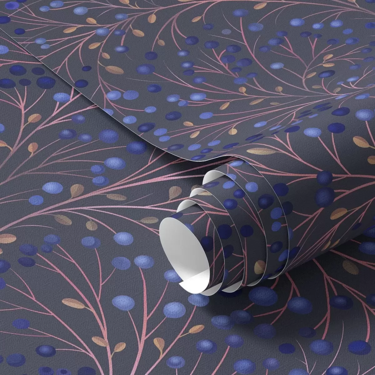 Tapeta Ružičasto-smeđe grane i borovnice na grafitnoj pozadini br. a00787