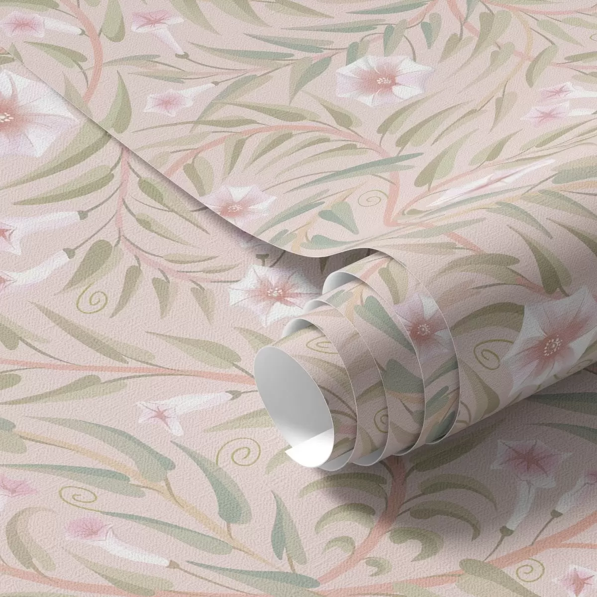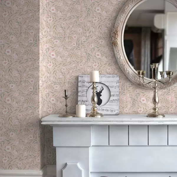 Tapeta Nježno ružičasto cvijeće i meko lišće na pastelnoj pozadini br. a00788