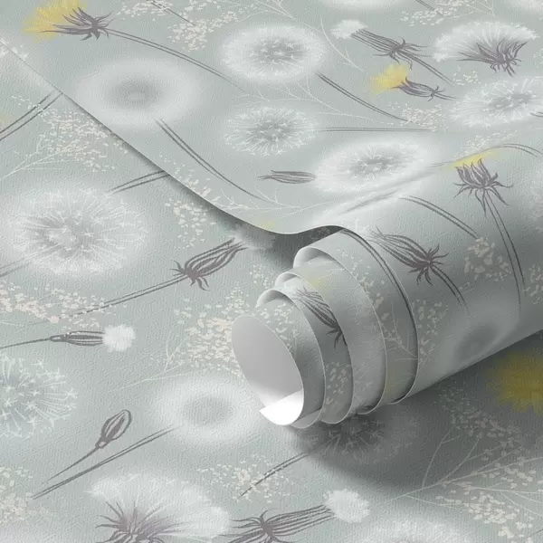 Tapeta Pahuljasti maslačci i sjemenke na pozadini boje mente br. a00790