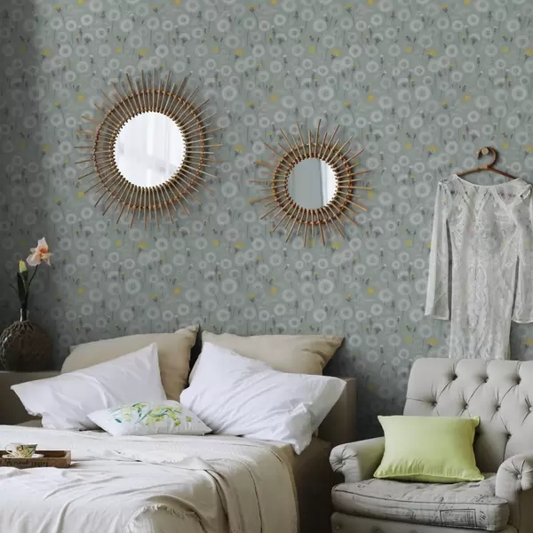 Tapeta Pahuljasti maslačci i sjemenke na pozadini boje mente br. a00790