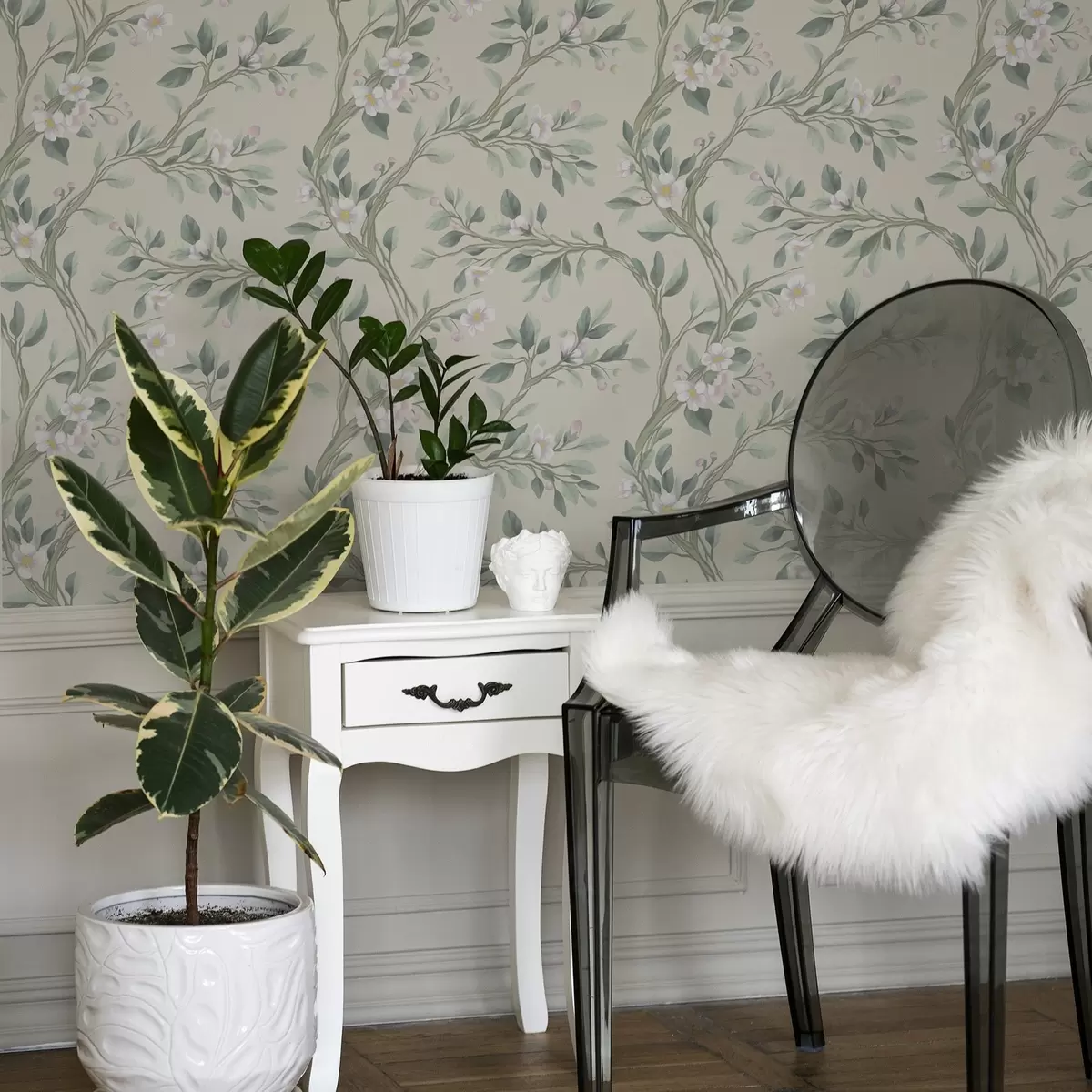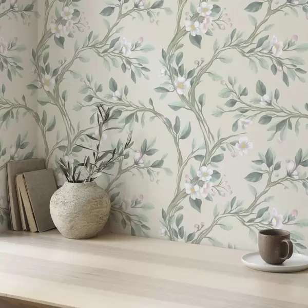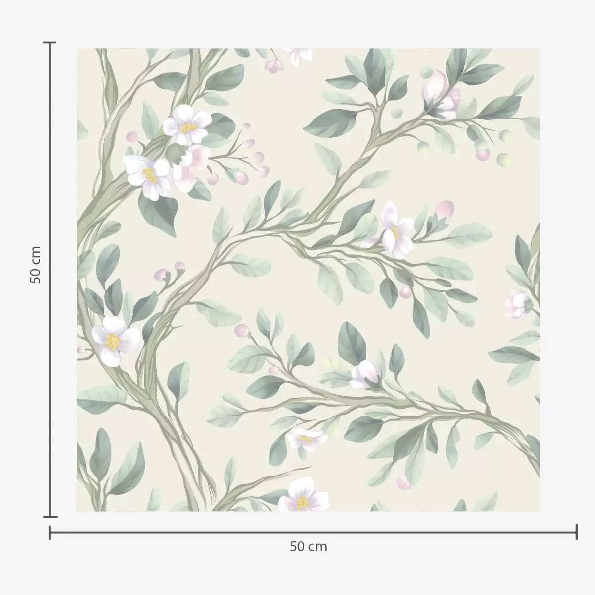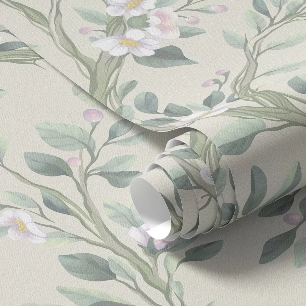 Tapeta Nježne cvjetajuće grane na kremastoj pozadini, pastelne br. a00793