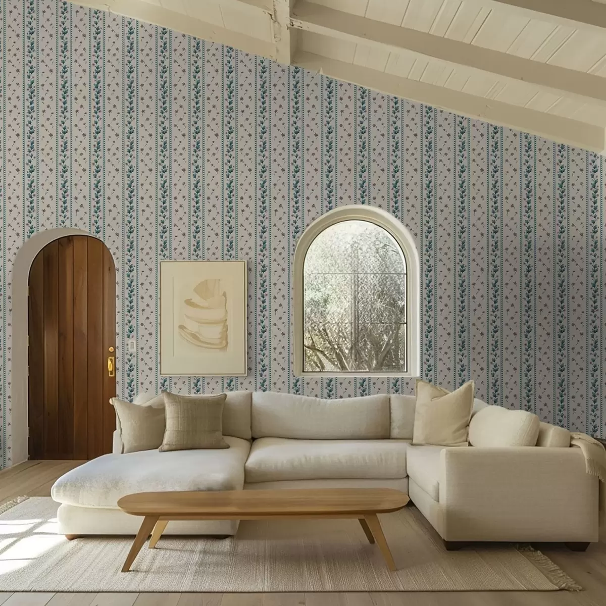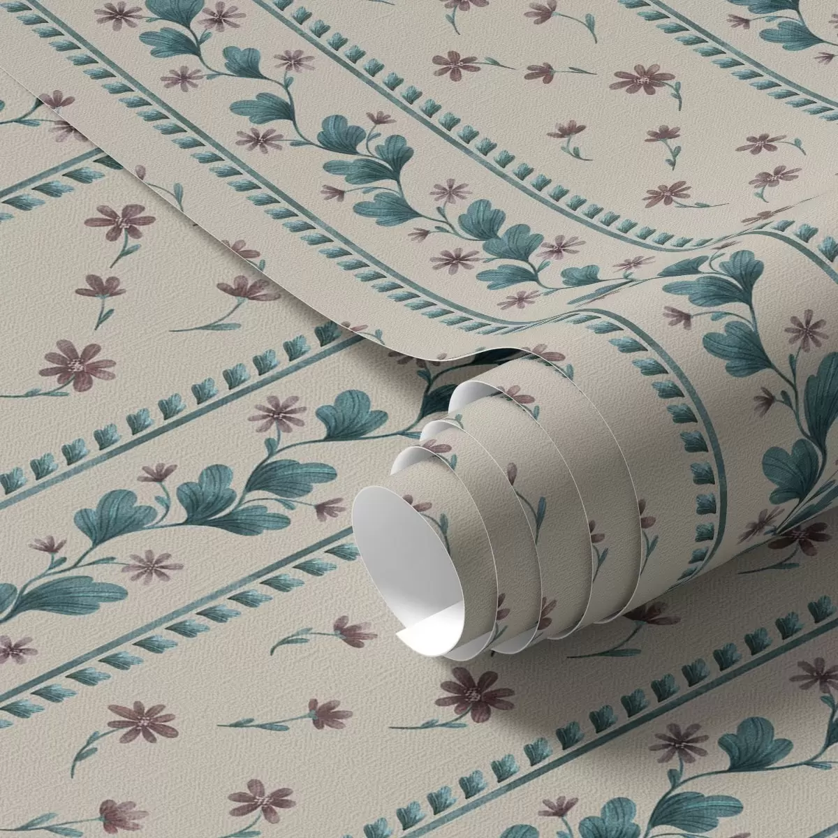 Tapeta Vertikalne cvjetne pruge u plavo-smeđim tonovima br. a00811v1