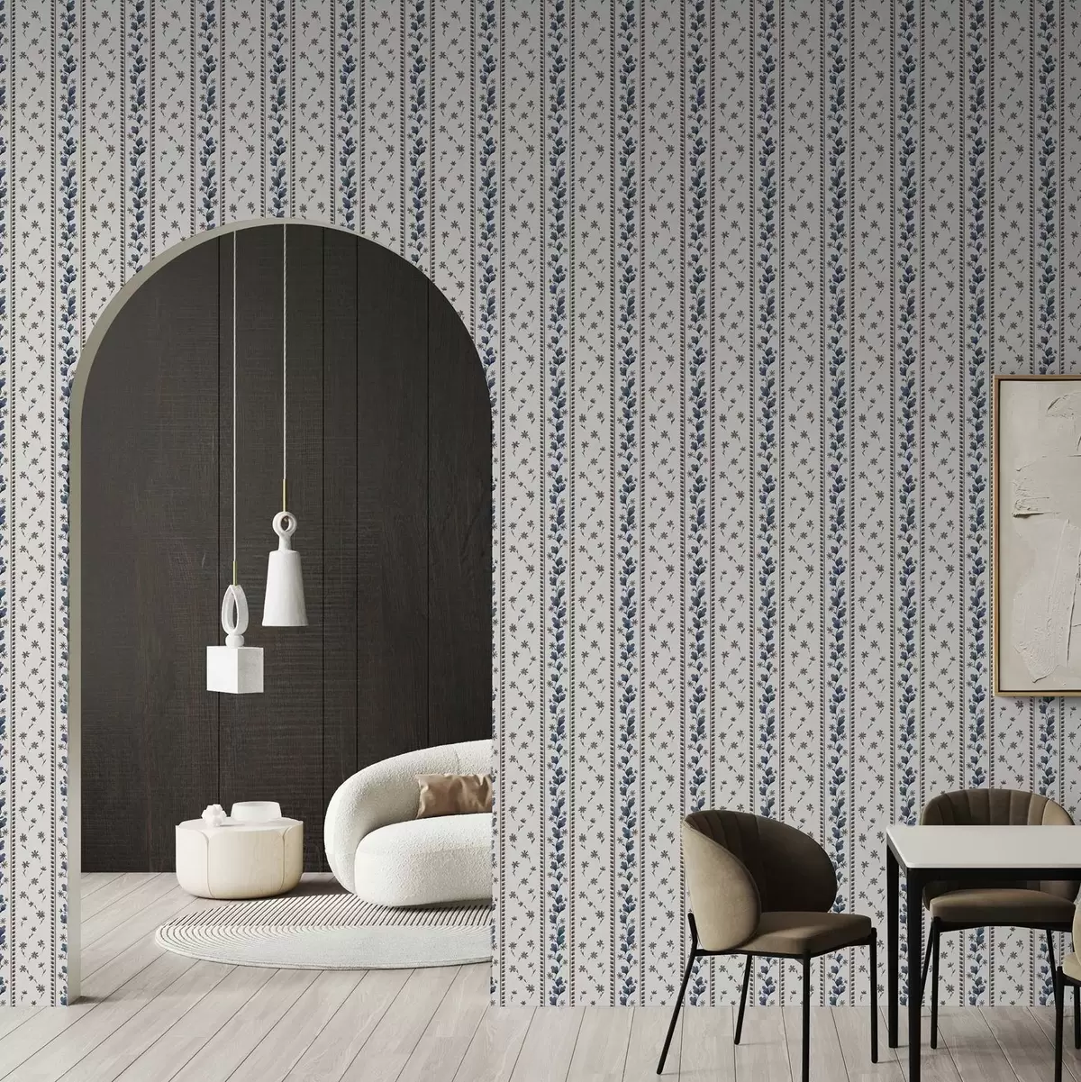 Tapeta Vertikalne cvjetne pruge u plavo-smeđim nijansama br. a00811v2