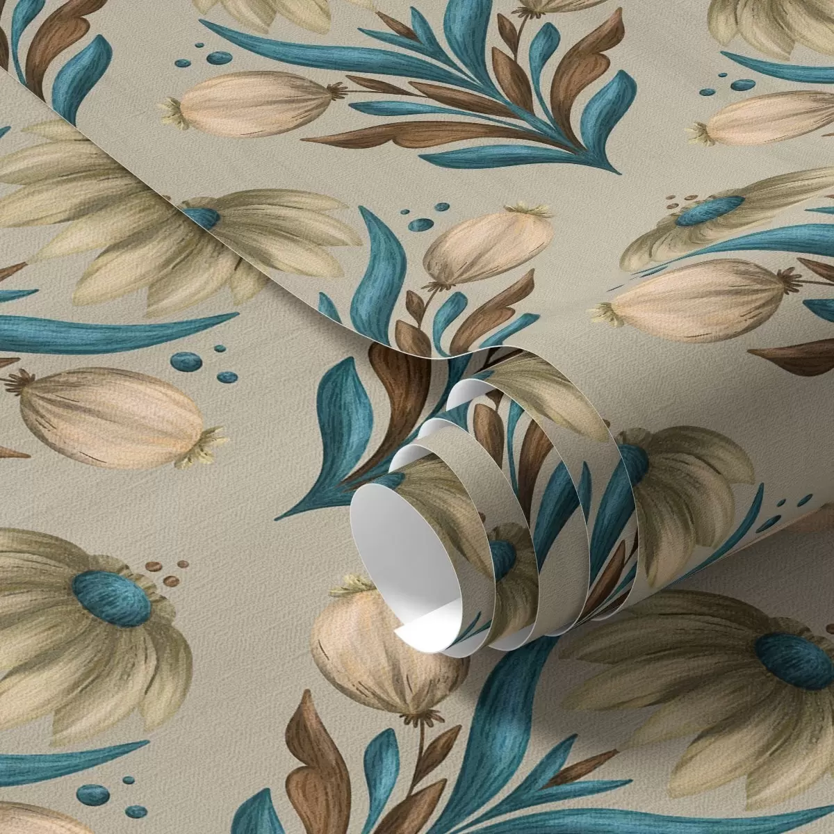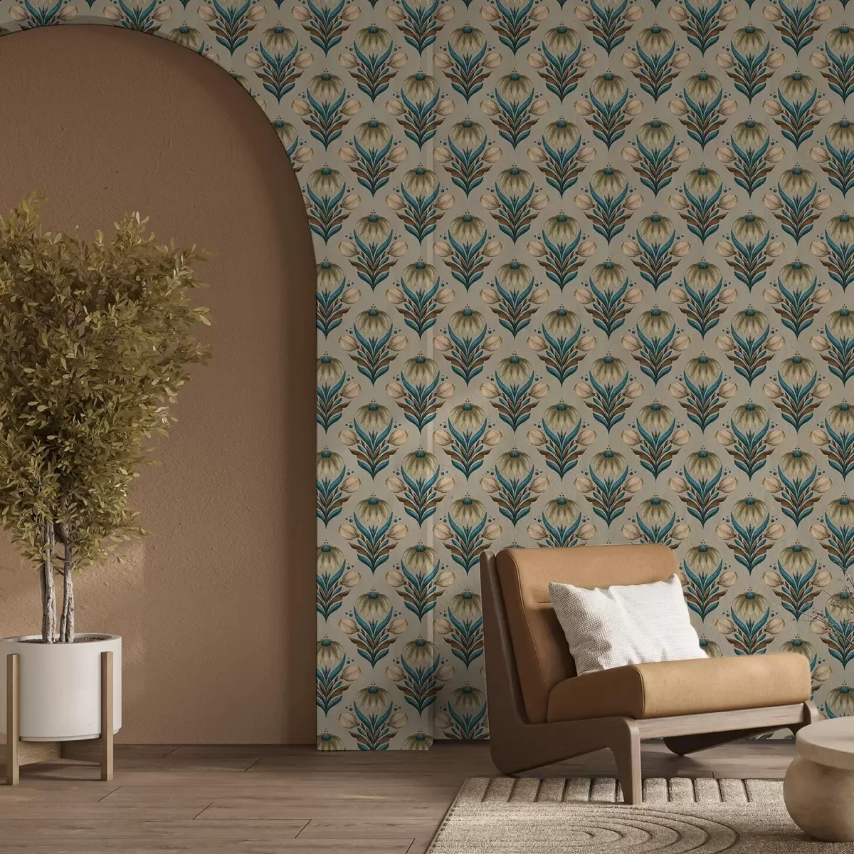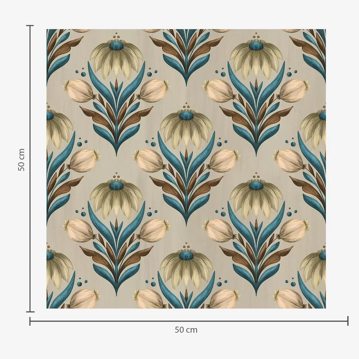 Tapeta Simetrični cvjetni ornament u toplim tonovima br. a00812