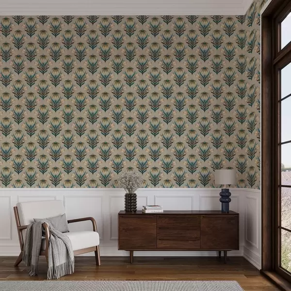 Tapeta Simetrični cvjetni ornament u toplim tonovima br. a00812