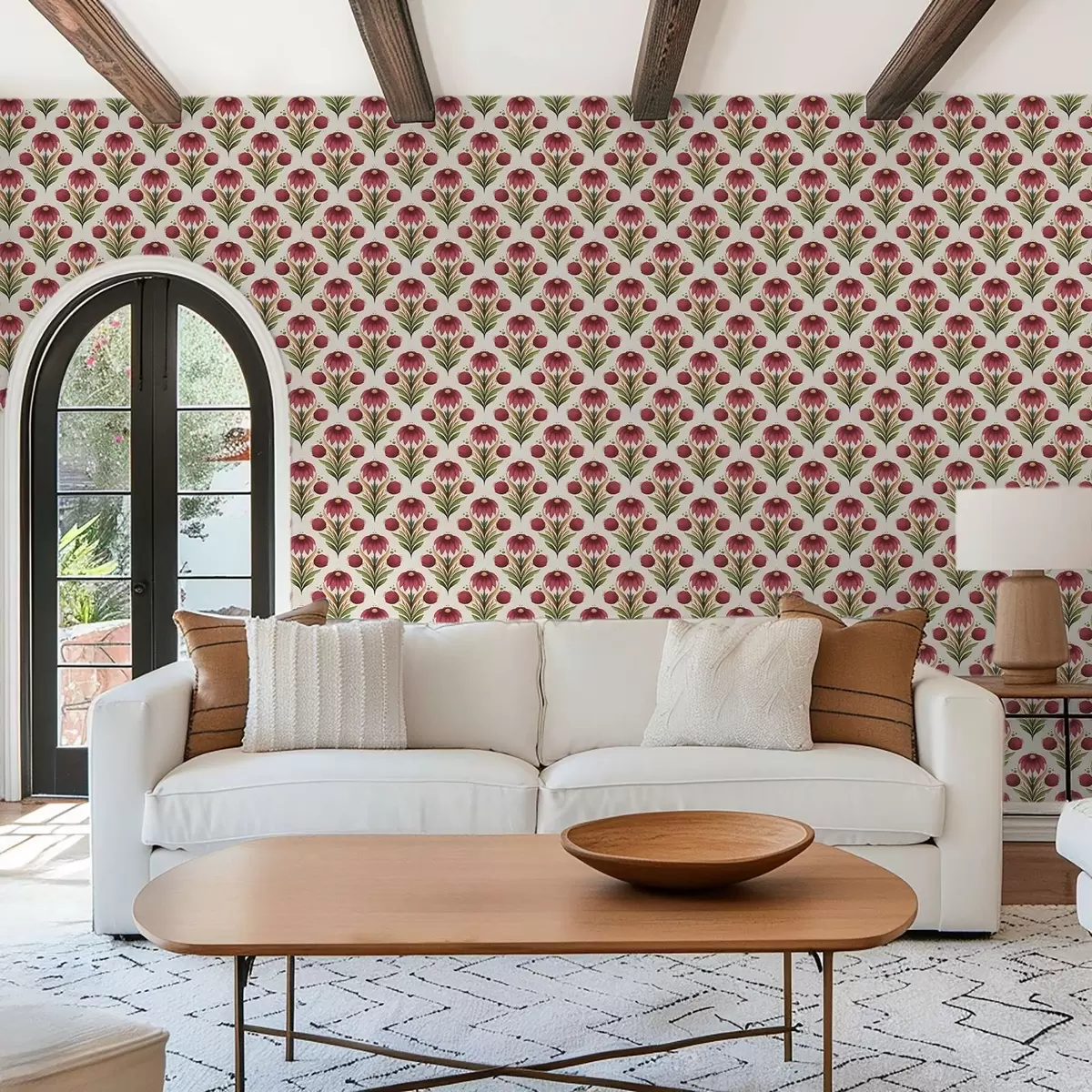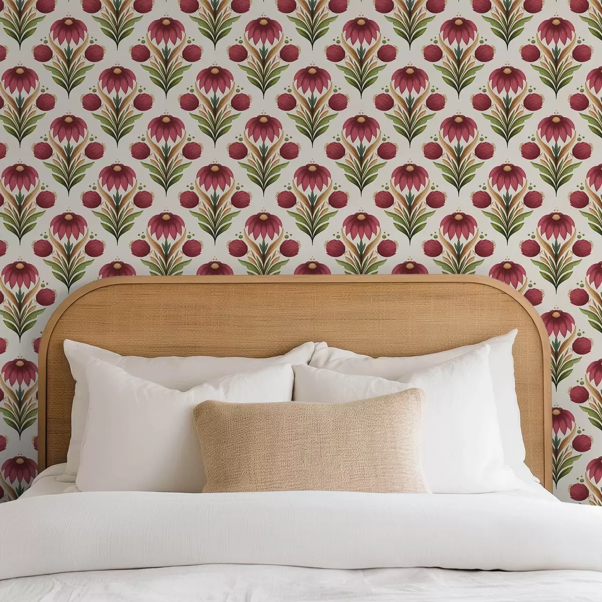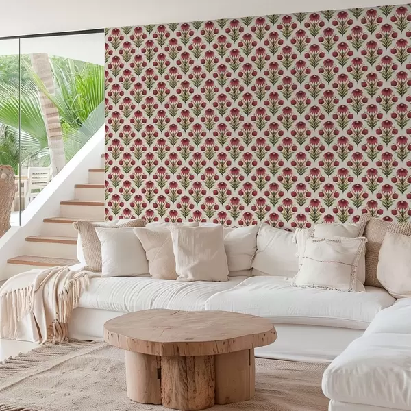 Tapeta Simetrični cvjetni ornament u bogatim crveno-zelenim tonovima br. a00812v4