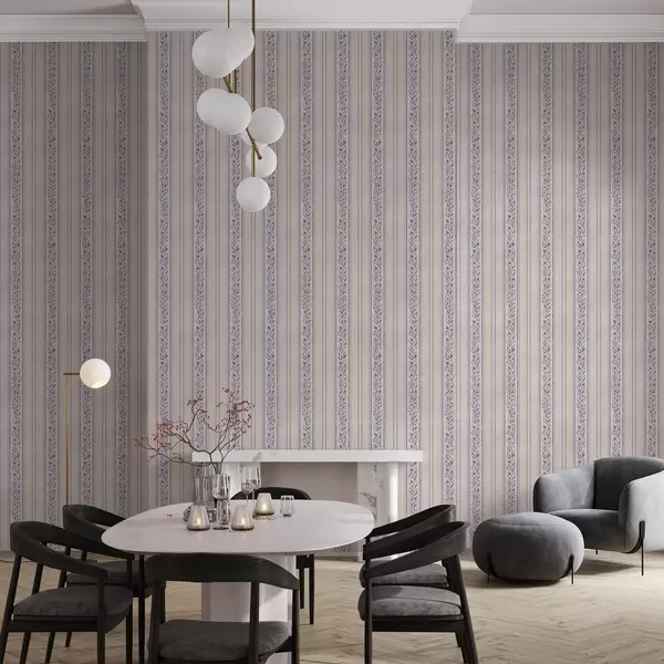 Tapeta Okomite pruge s vinjetama lavande, topla bež boja br. a00813