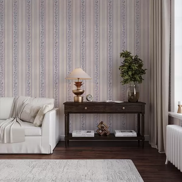 Tapeta Okomite pruge s vinjetama lavande, topla bež boja br. a00813
