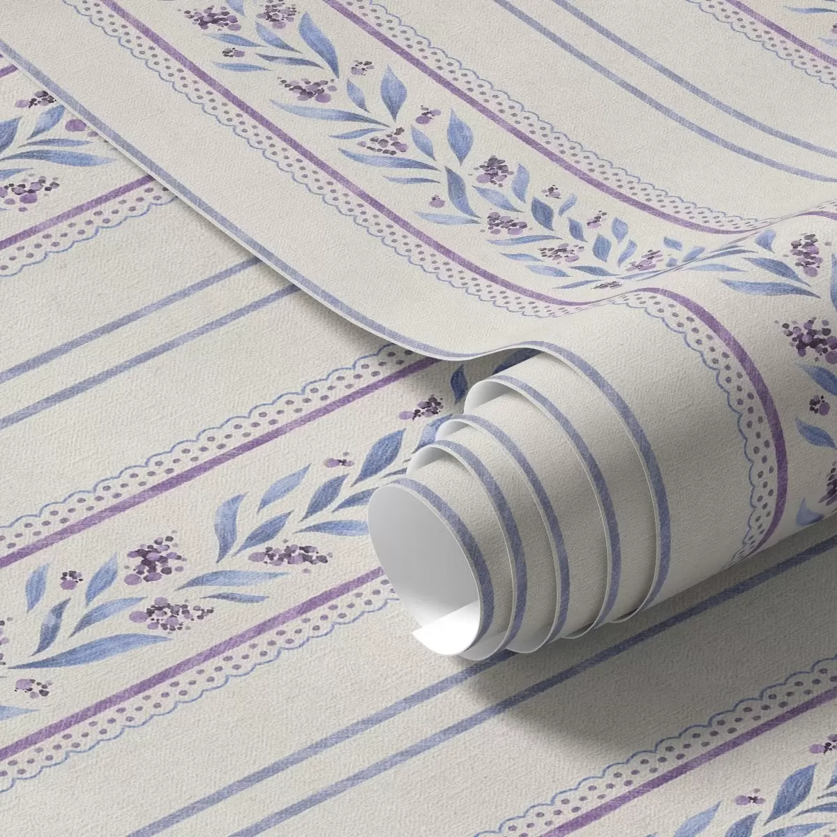 Tapeta Okomite pruge s vijencima lavande, bež pozadina br. a00813v1