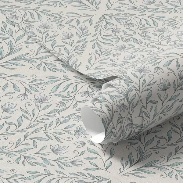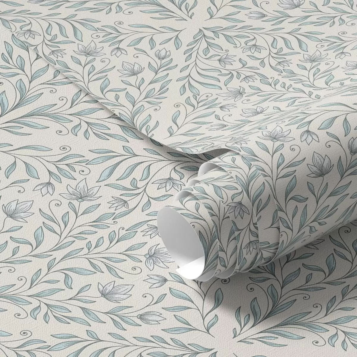 Tapeta Čipkasti izdanci na kremasto bijeloj boji s tirkiznim obrisom br. a00815v4