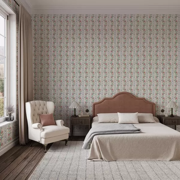 Tapeta Vertikalne pruge s koraljnim cvijećem i tirkiznim lišćem br. a00816