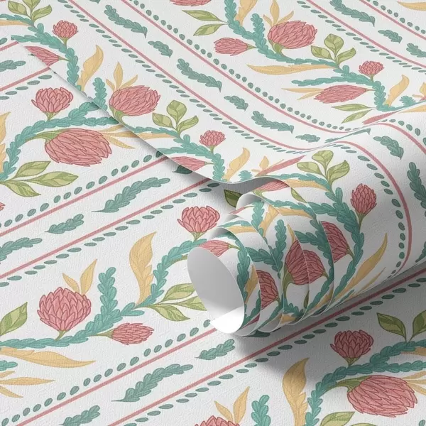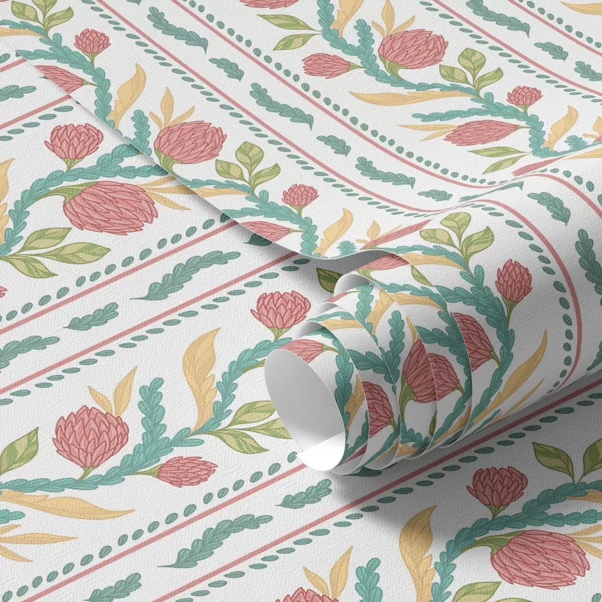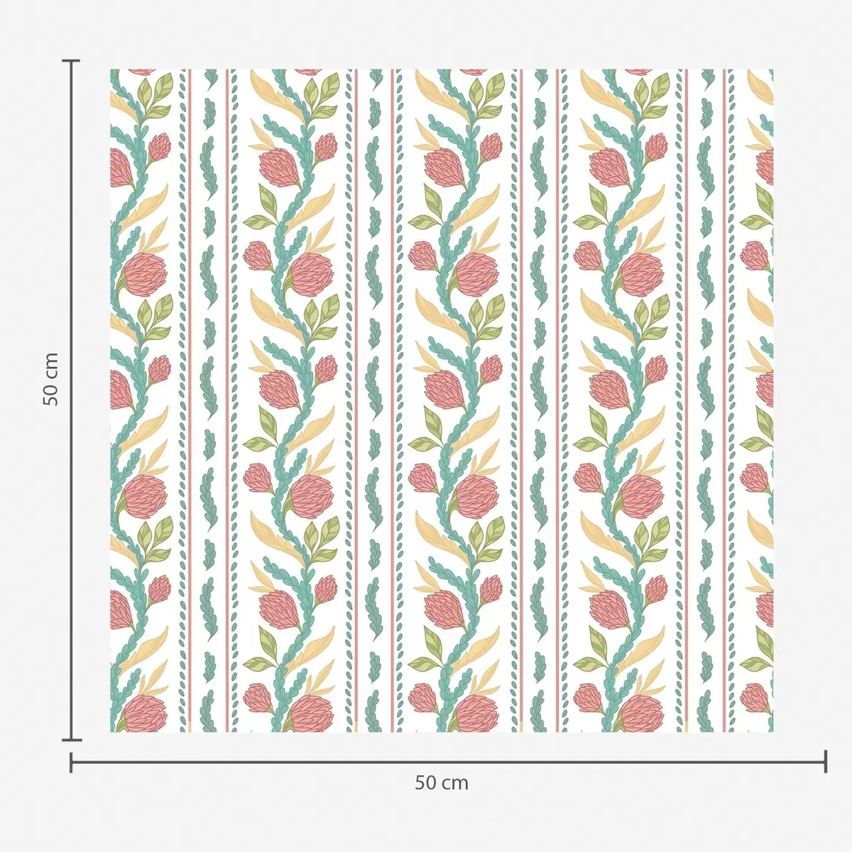 Tapeta Vertikalne pruge s koraljnim cvijećem i tirkiznim lišćem br. a00816