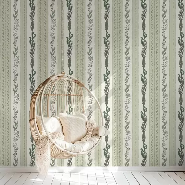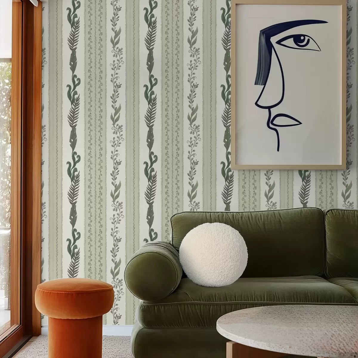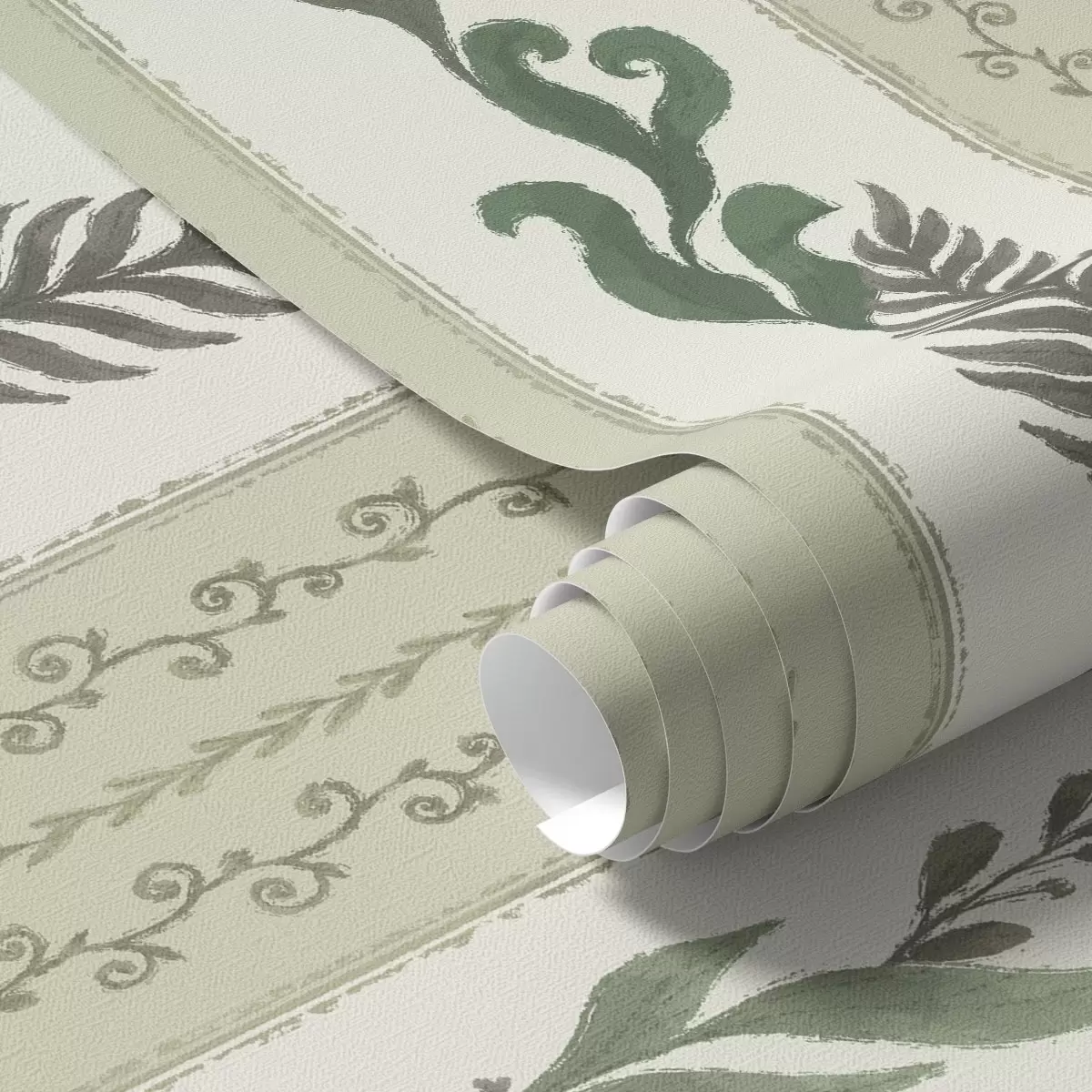 Tapeta Pruge s granama u zelenim i sivim nijansama, meki kontrast br. a00824