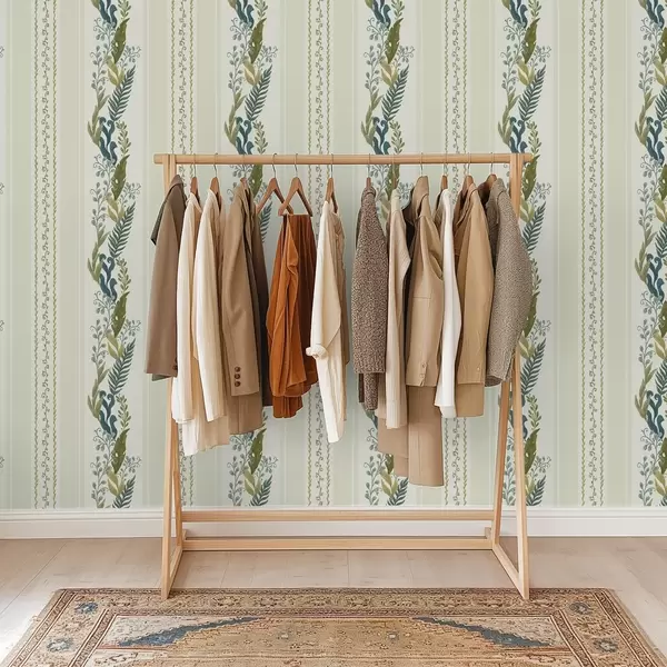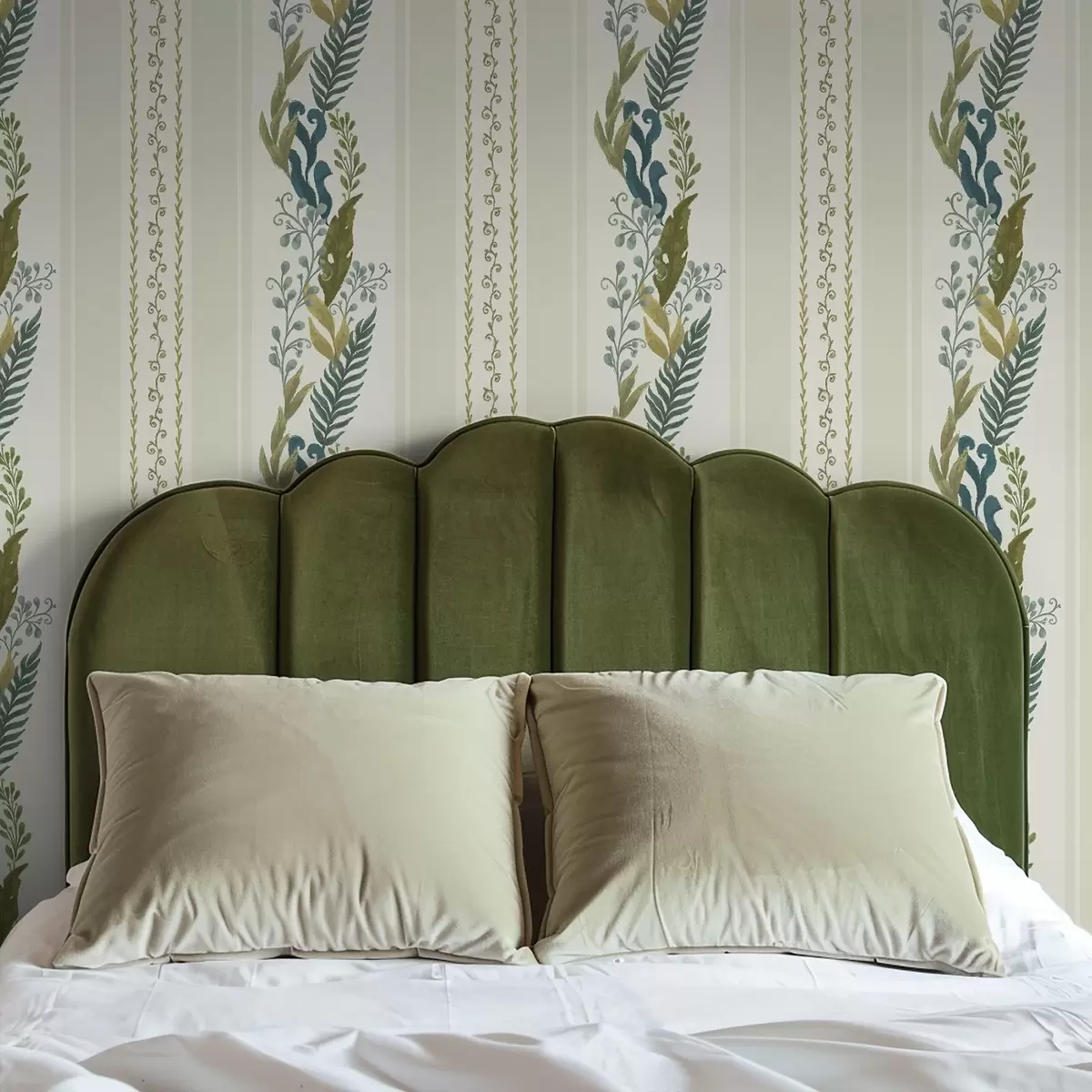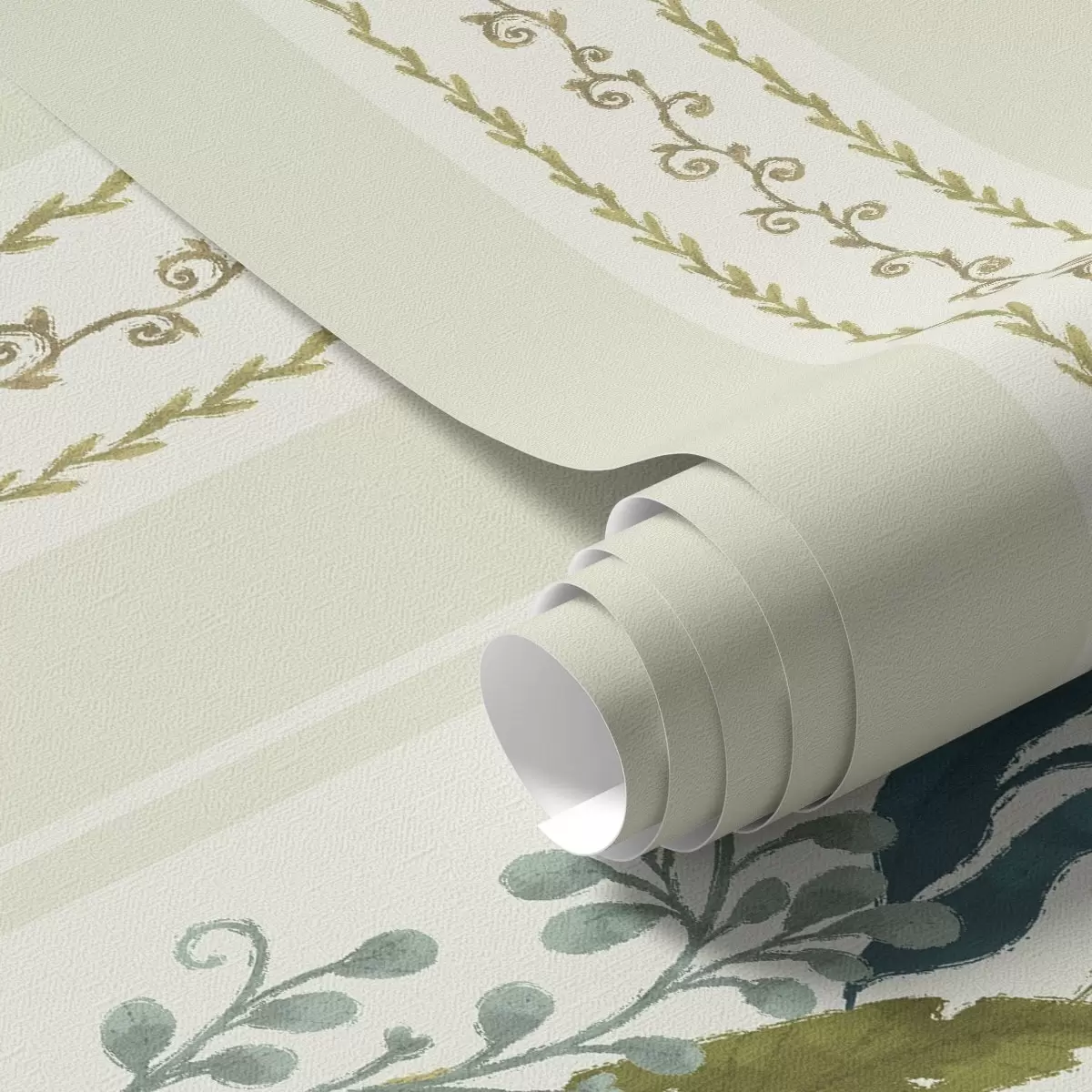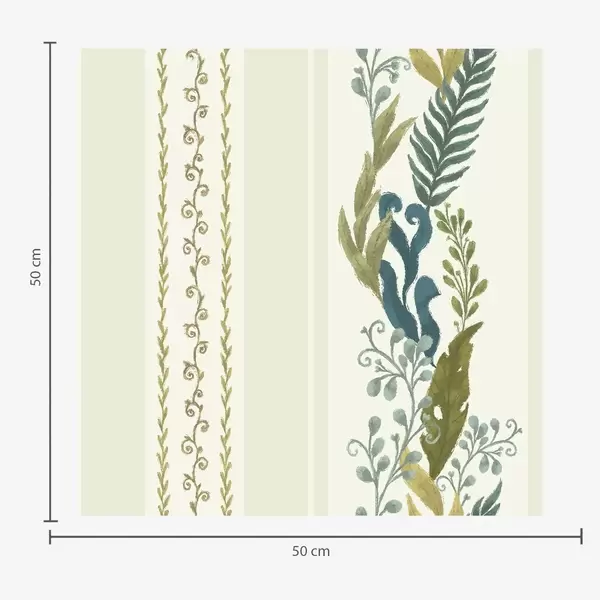 Tapeta Široke pruge sa slikarskim granama u plavo-maslinastim tonovima br. a00825