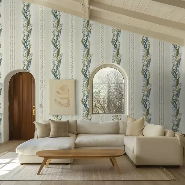 Tapeta Široke pruge sa slikarskim granama u plavo-maslinastim tonovima br. a00825