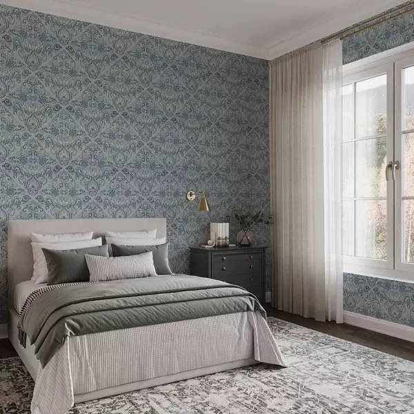 Tapeta Klasični damast, plavi motivi na kremastoj podlozi br. a00826v1