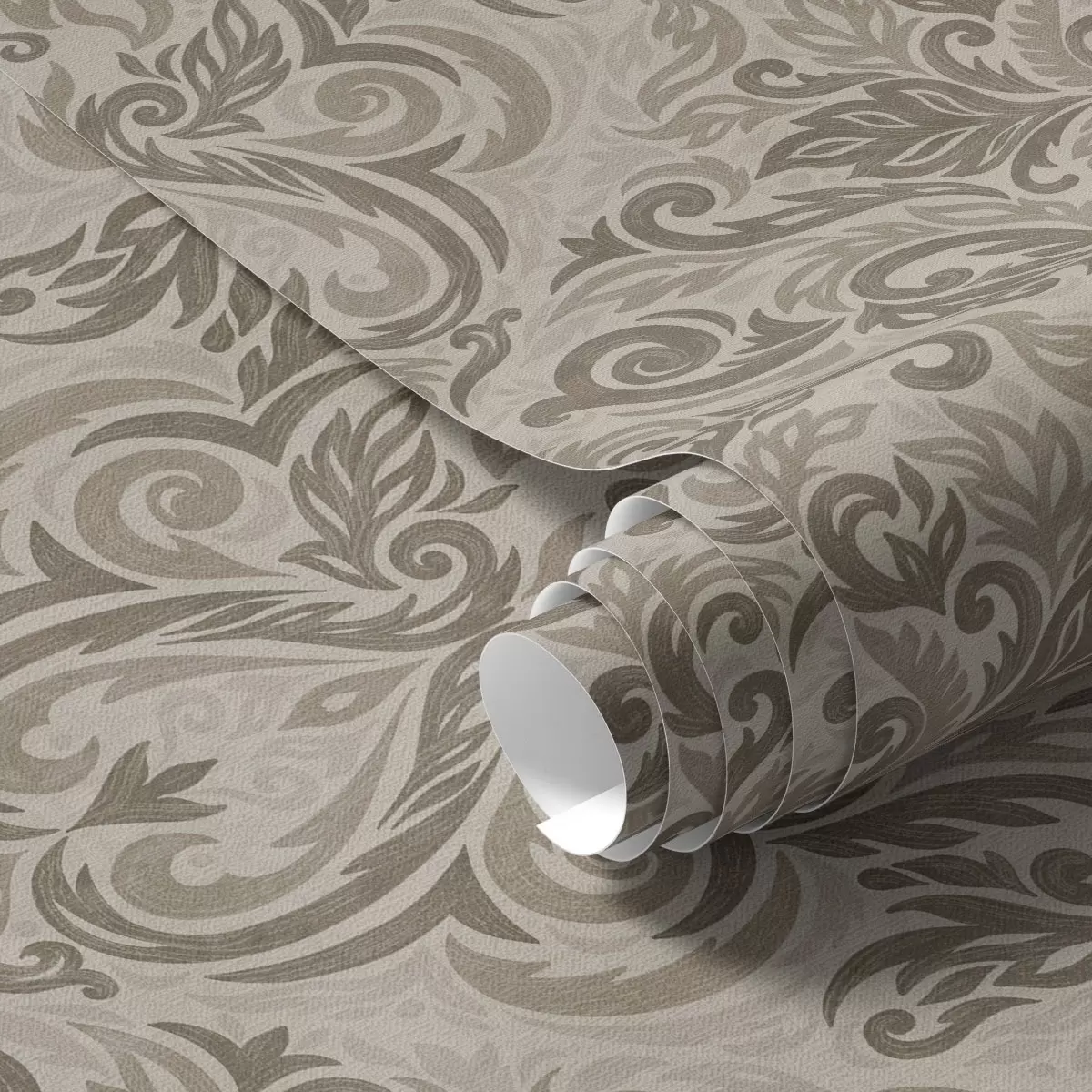 Tapeta Damask u toplim sivo-smeđim tonovima na svijetloj podlozi br. a00826v3