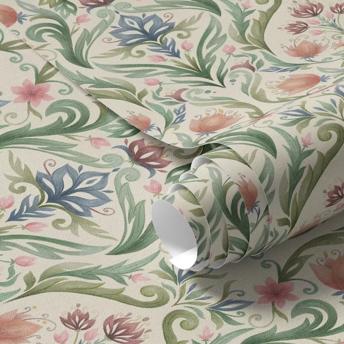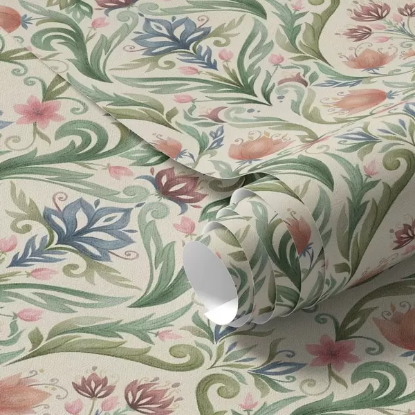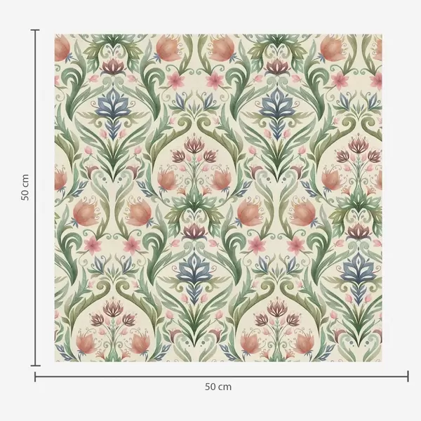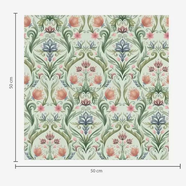 Tapeta Simetrični cvjetni ornament, terakota i zelena br. a00827