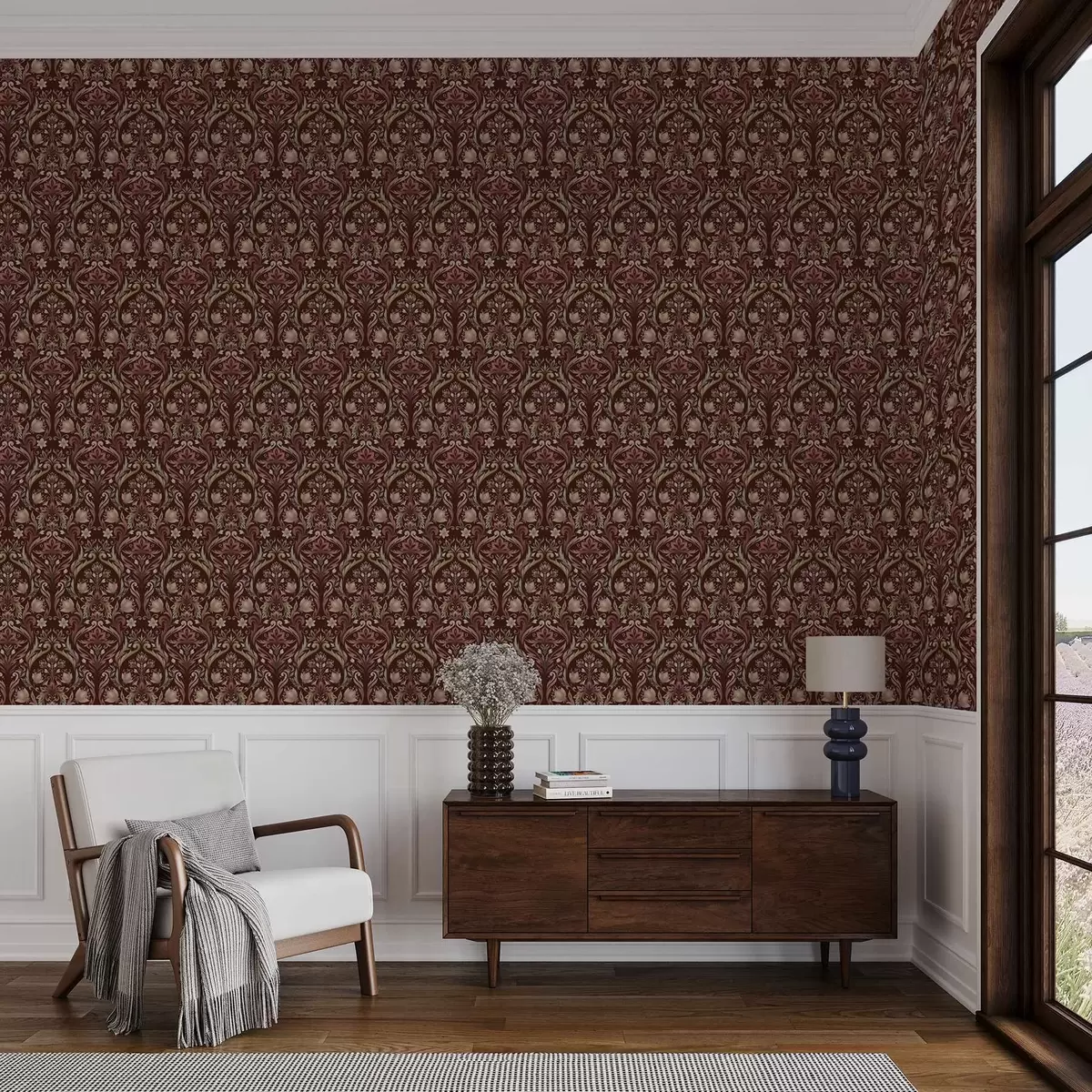 Tapeta Ornament od tulipana, bogata bordo pozadina br. a00827v2