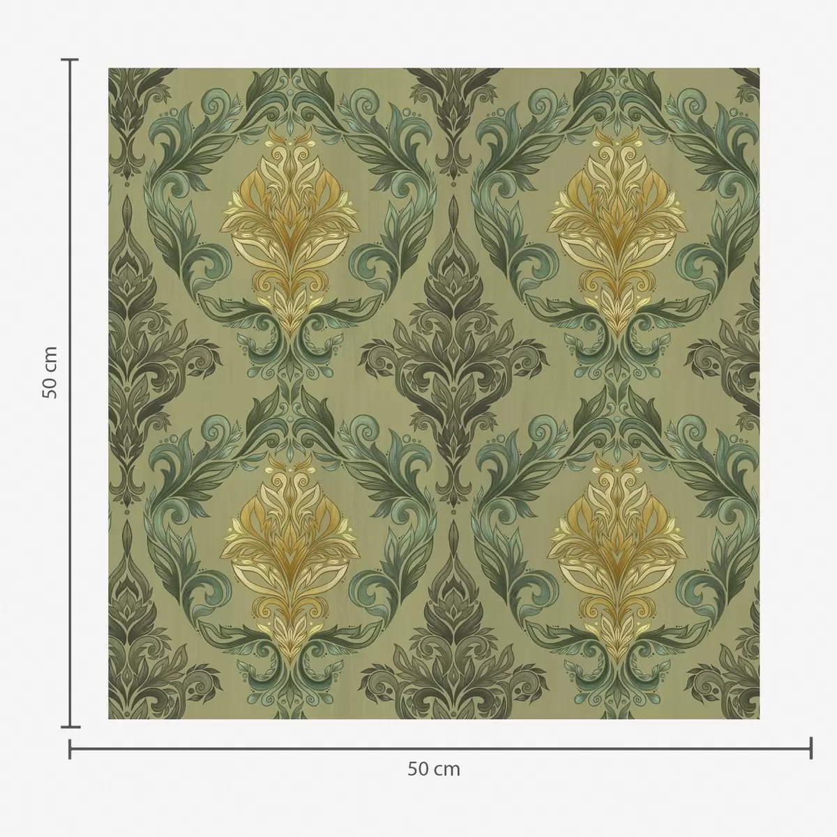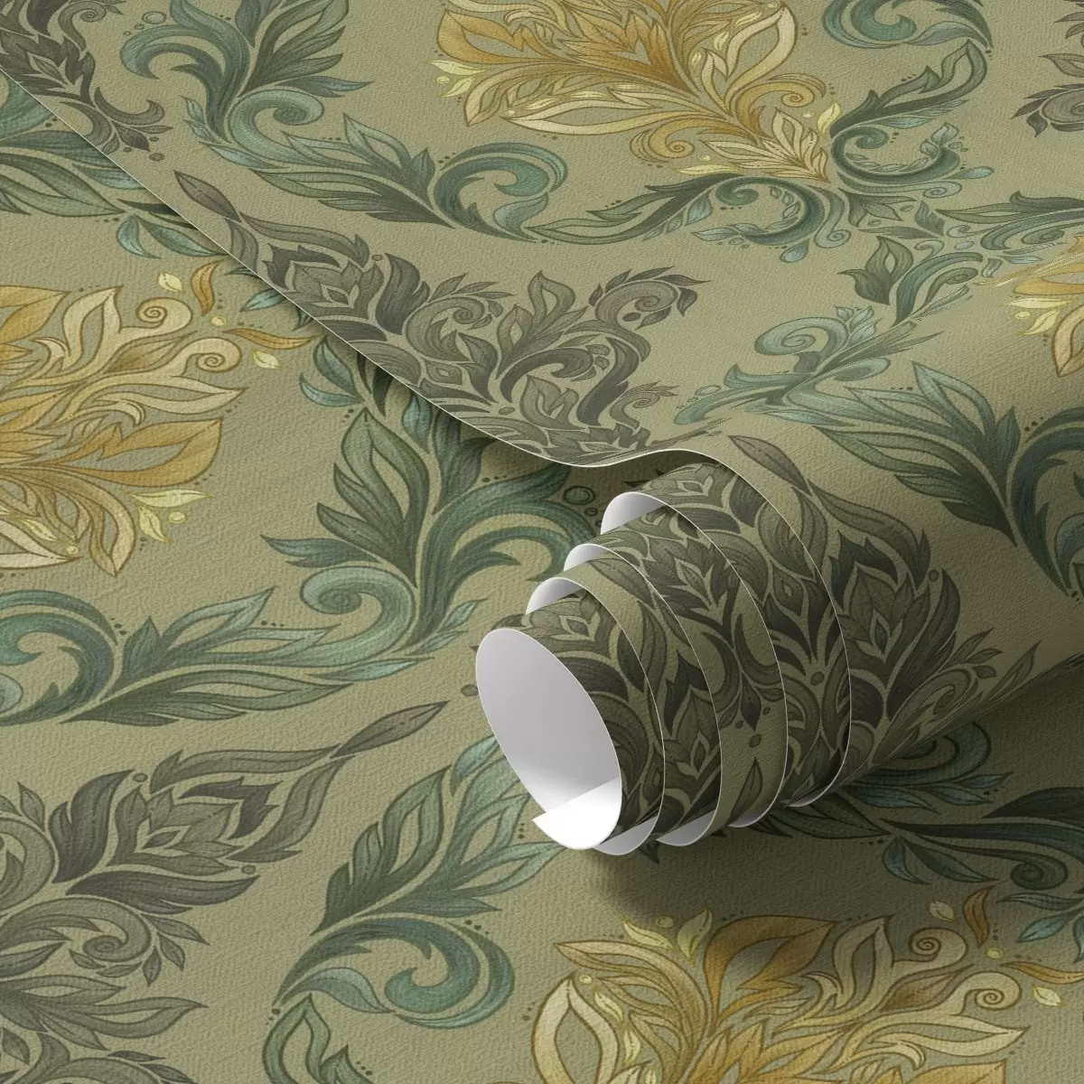 Tapeta Damask s biljnim svitcima, maslinasto-oker paleta br. a00828