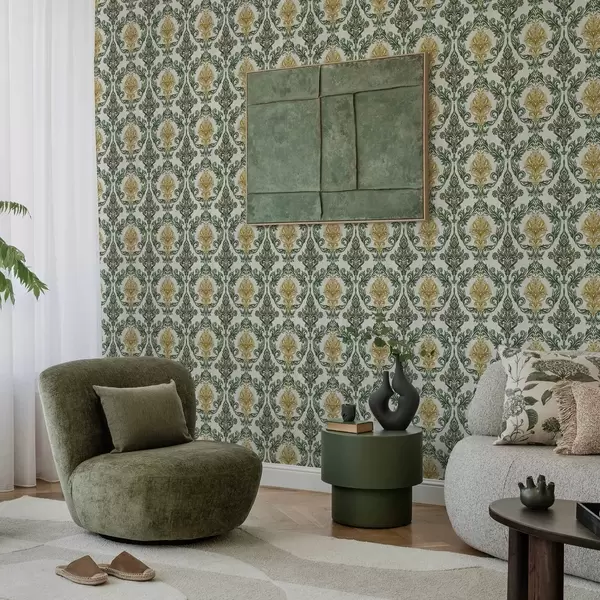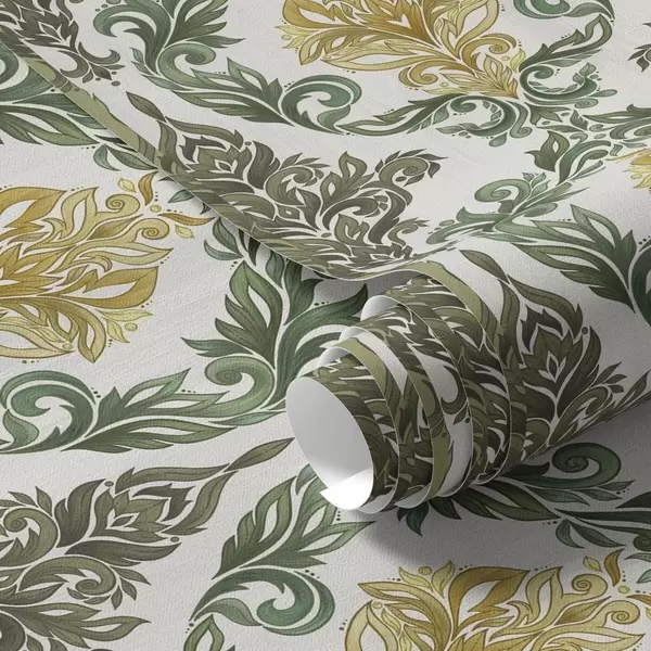 Tapeta Damast sa zelenim svitcima na svijetloj podlozi br. a00828v1