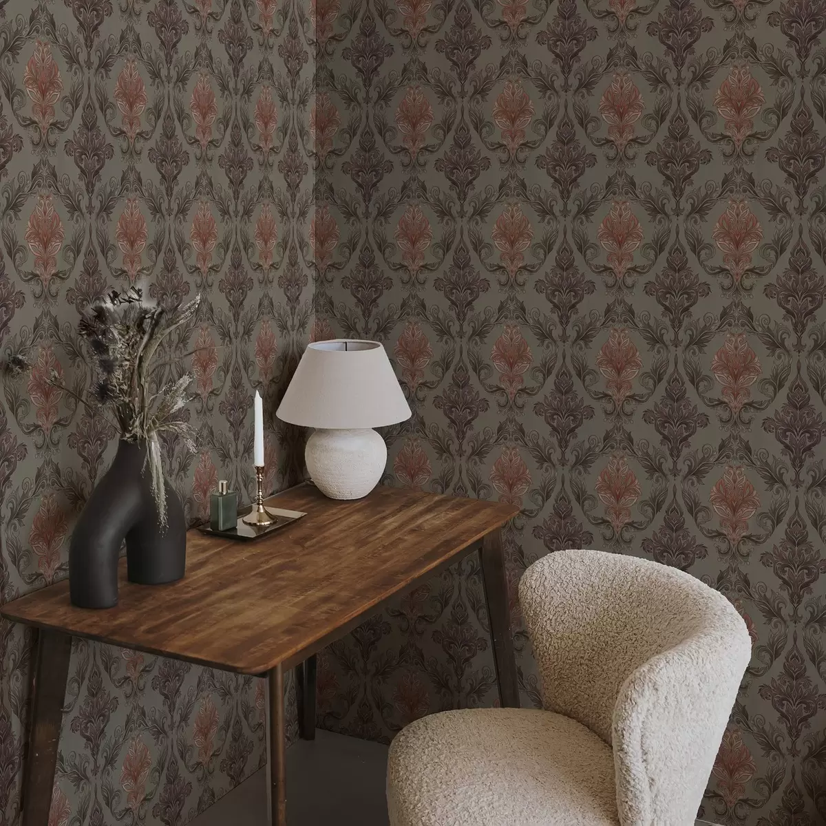 Tapeta Terakota damast na prigušenom maslinastom tlu br. a00828v3