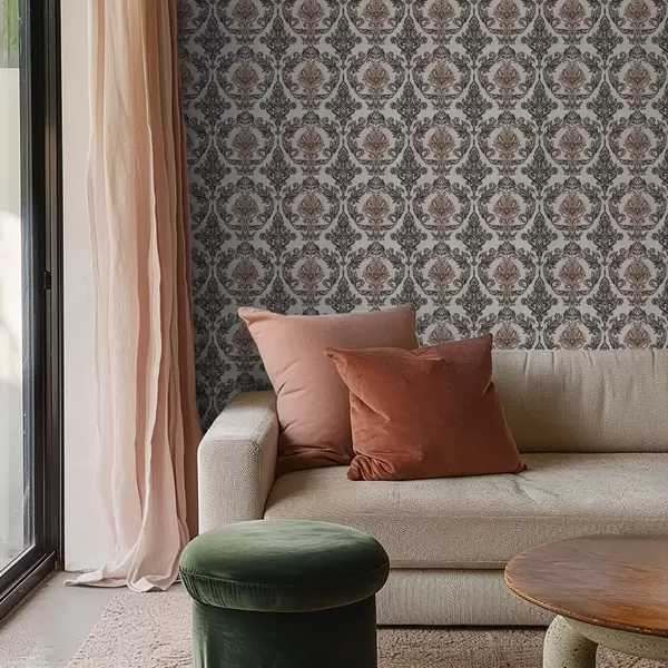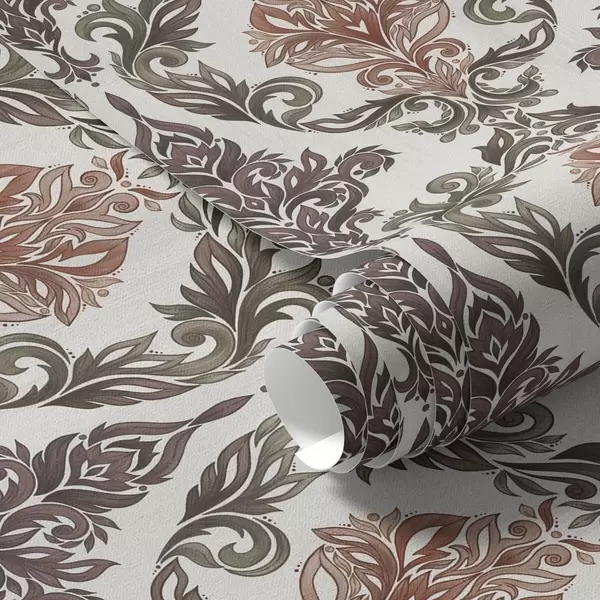 Tapeta Damask s bakreno-smeđim naglascima na svijetloj podlozi br. a00828v4
