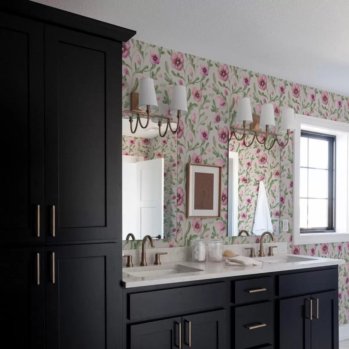 Tapeta Nježni ružičasti makovi s lišćem u tehnici akvarela br. a00830