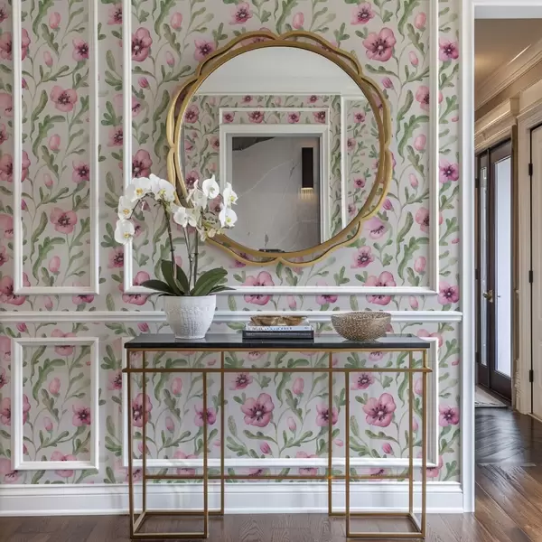 Tapeta Nježni ružičasti makovi s lišćem u tehnici akvarela br. a00830