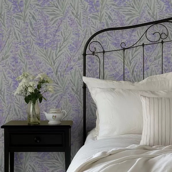 Tapeta Grančice lavande u ljubičastim tonovima na svijetloj pozadini br. a00835