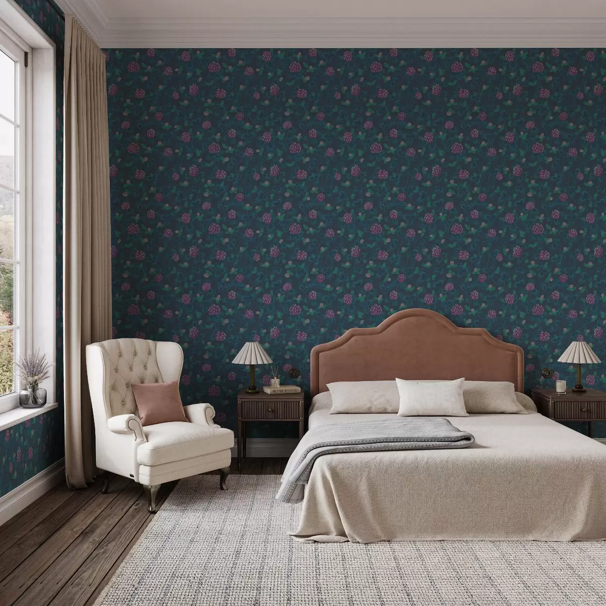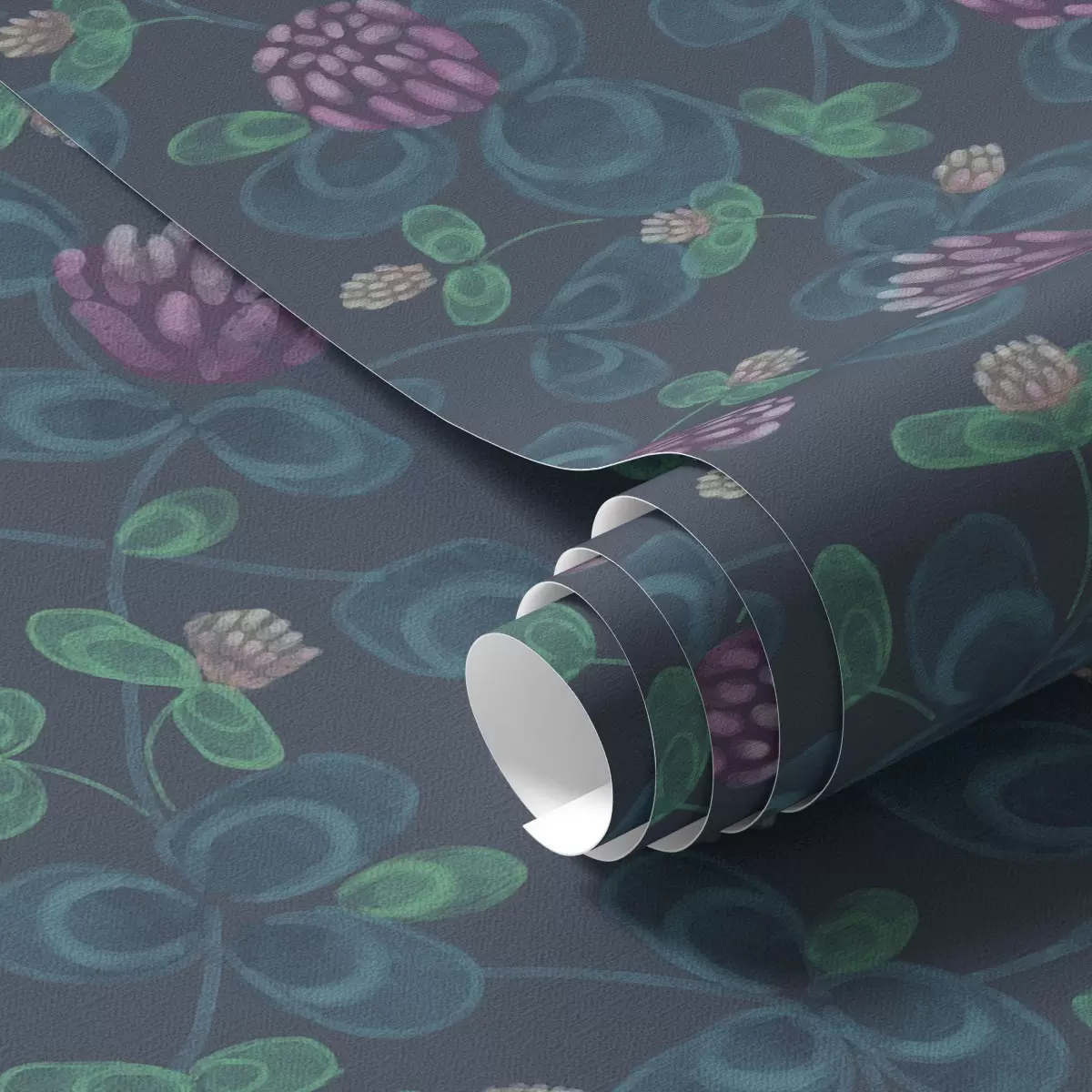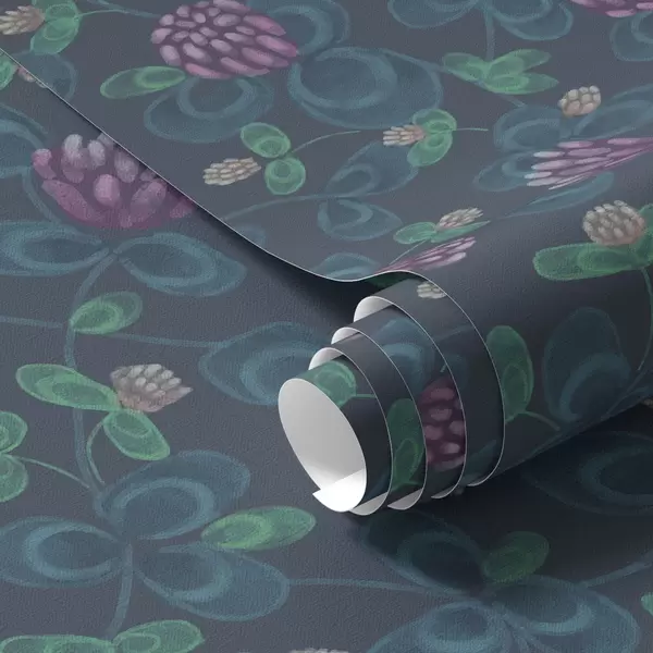 Tapeta Djetelina s ljubičastim cvjetovima na tamnoplavoj pozadini br. a00836