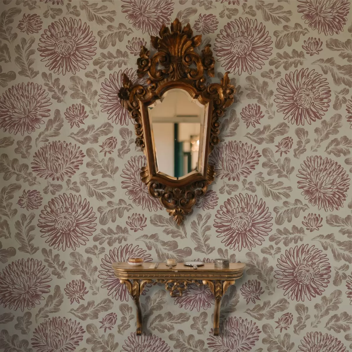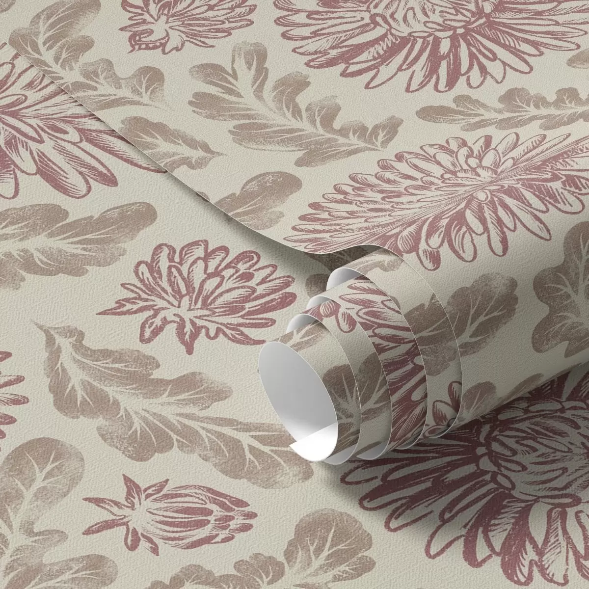 Tapeta Krizanteme s vinskim naglascima na kremi br. a00840v1