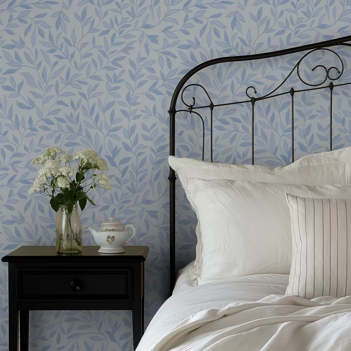 Tapeta Plave grančice s lišćem na svijetloplavoj podlozi br. a00842