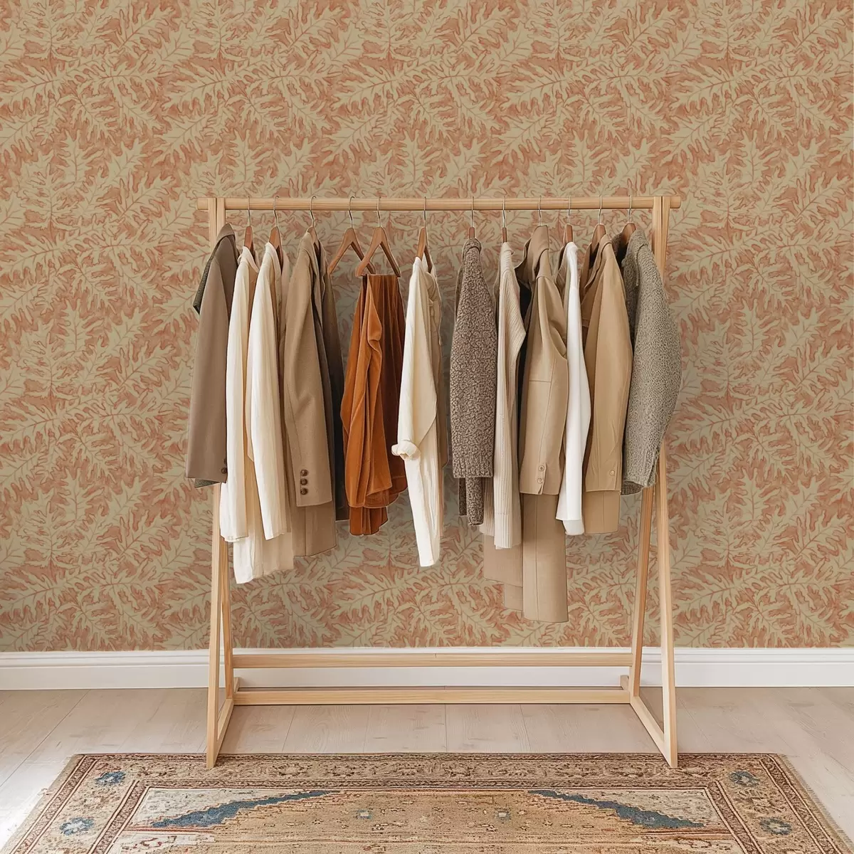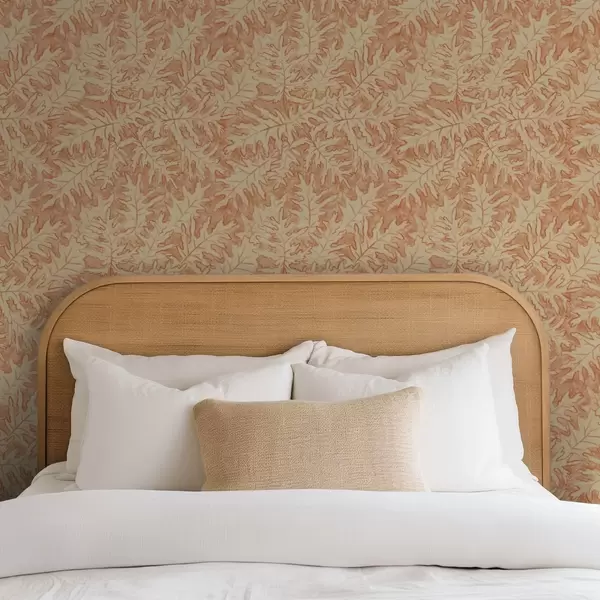 Tapeta Veliki hrastovi listovi u terakoti na kremastoj podlozi br. a00846