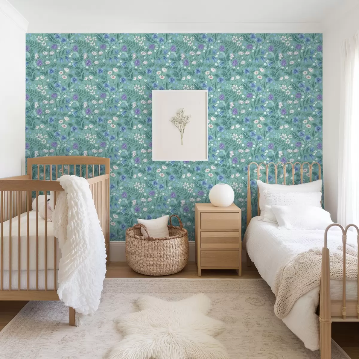 Tapeta Divlje cvijeće i bobice na mekoj pozadini mente br. a00849